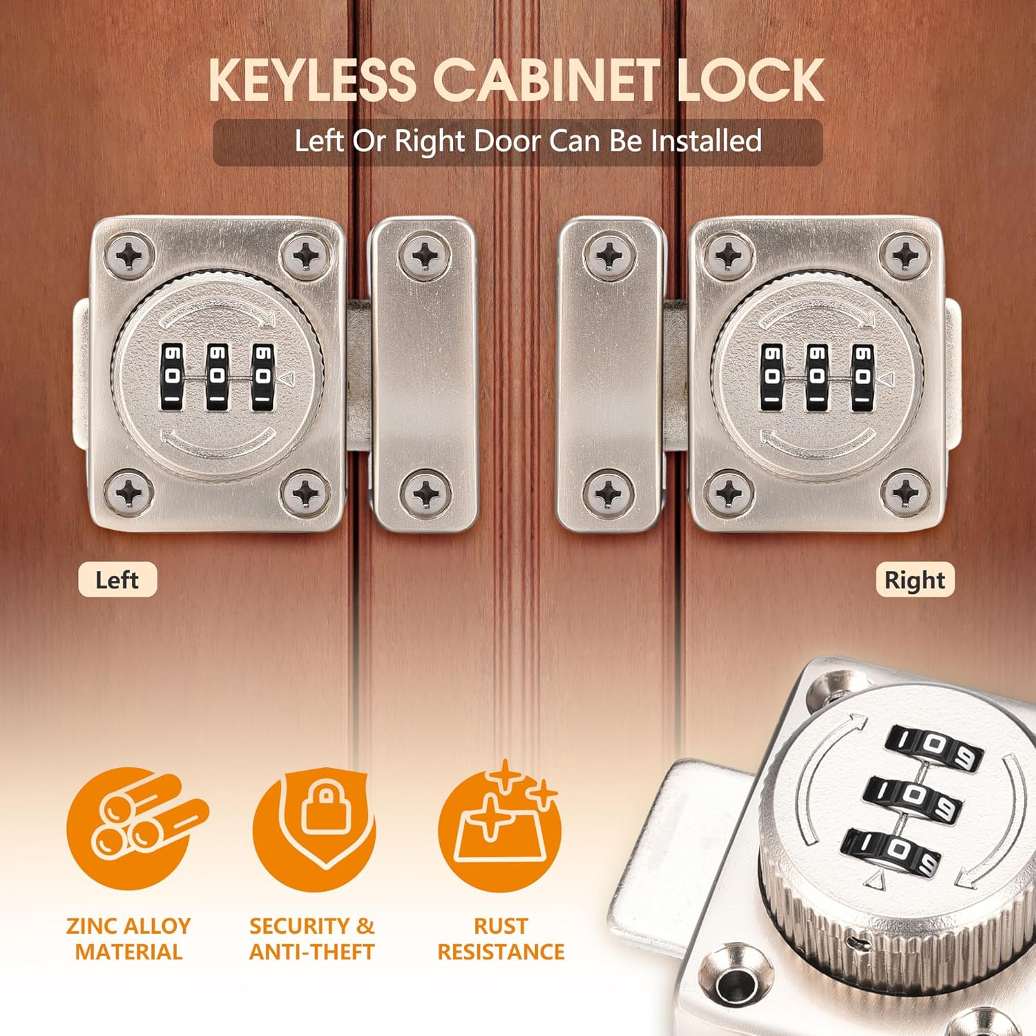 Safe Cabinet Password Latch: This combination door latch offers 1000 password combinations and ensures the security of your items by setting a password that only you know.