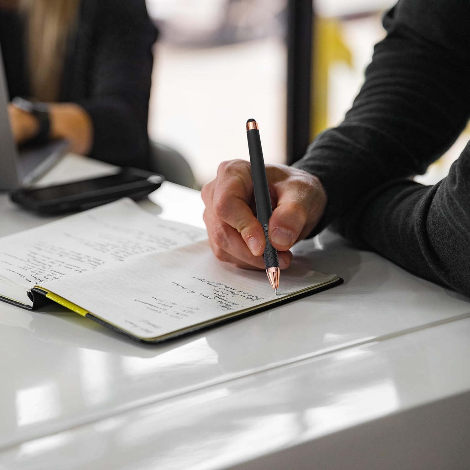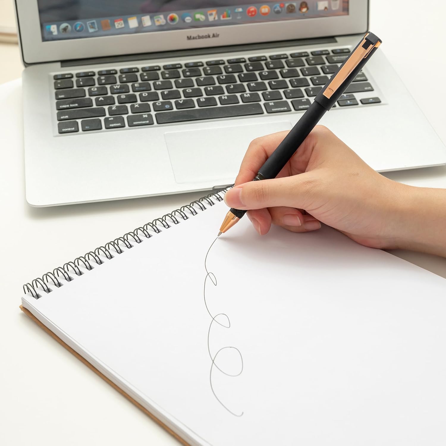 SLEEK & STYLISH DESIGN – The pen holder is ergonomically designed to be comfortable. Pens with gold metal accents for a Professional look. Ideal for office pens, signature pens, school supplies for adults and children