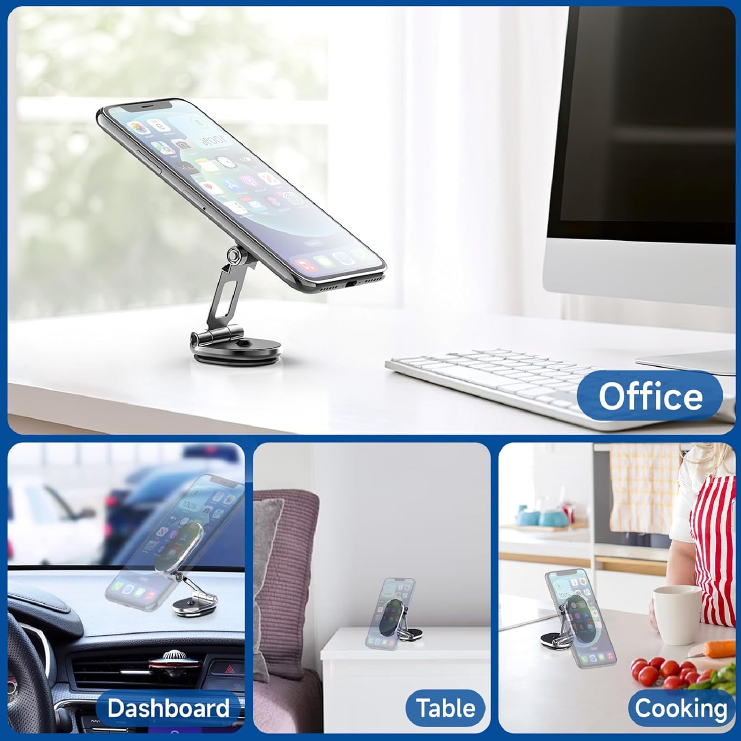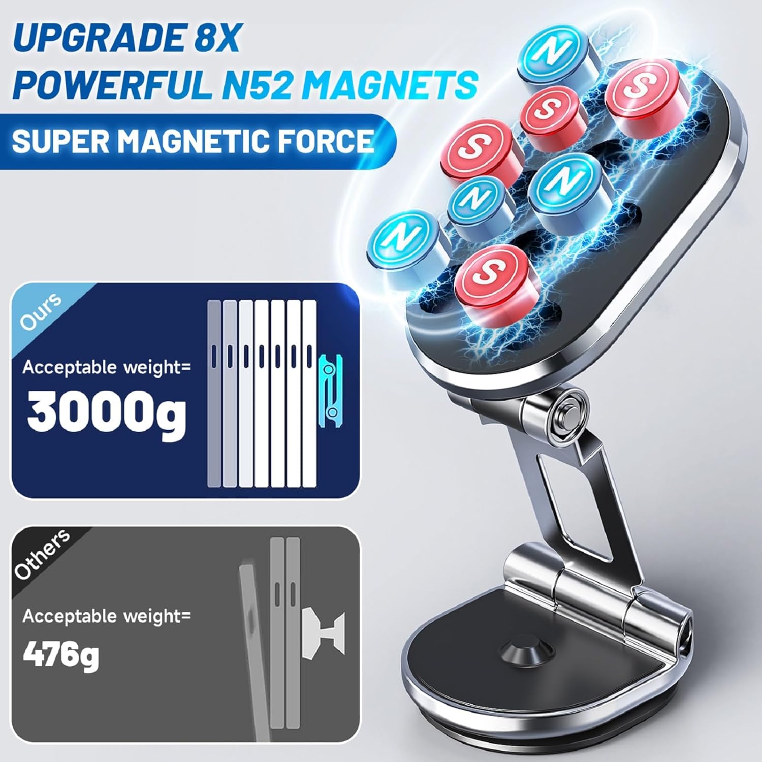 Magnetic Phone Holder for Car Upgrade Foldable 8X Strong Magnetic Phone Mount Multi-Functional 720°Rotation Magnet Cell Phone Mount for All Smartphones (Standard Black)