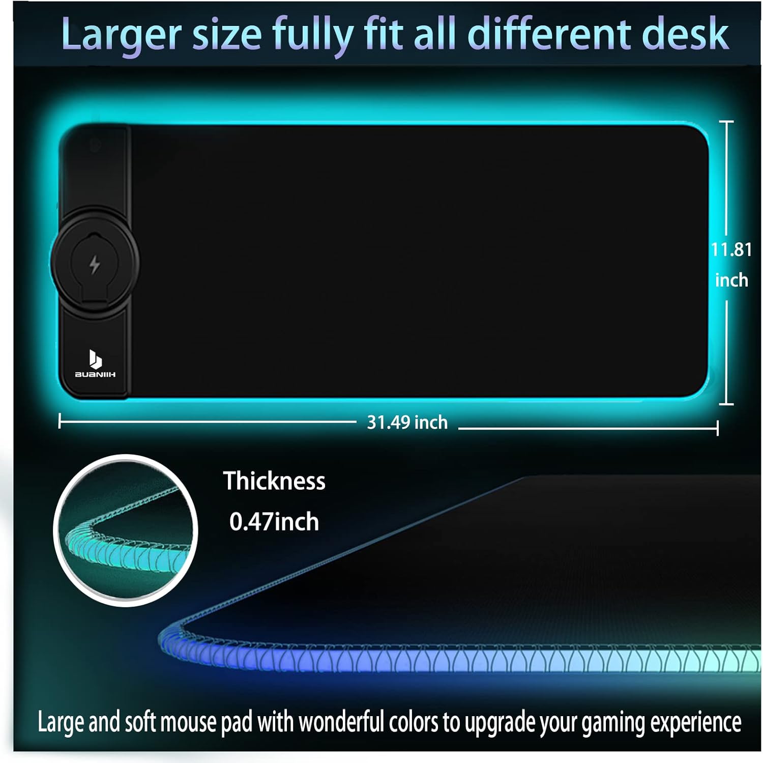BUANIIH 15W Wireless Charging RGB Gaming Mouse Pad LED Mouse Mat 800x300x4MM with 10 Light Modes Extra Large Mousepad Non-Slip Rubber Base Computer Keyboard Mat for Gaming, PC, Laptop, Desk