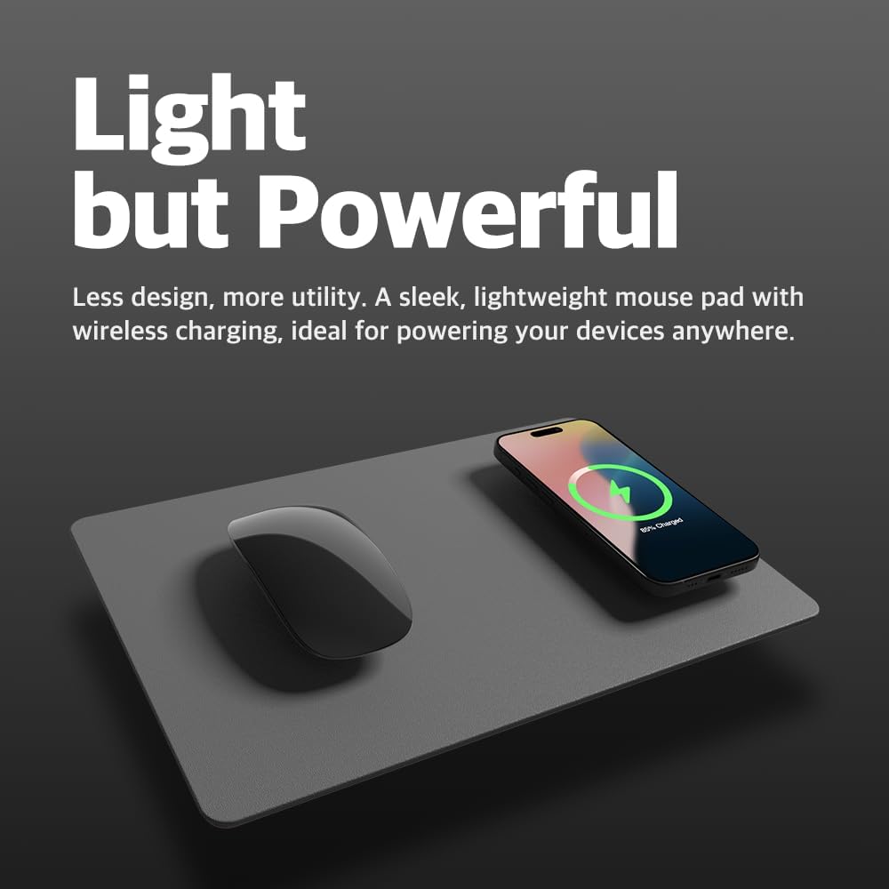 ✅ 2-in-1 Design: Combines a smooth, precision-tracking mouse pad with a built-in Qi wireless charger for streamlined desk organization.