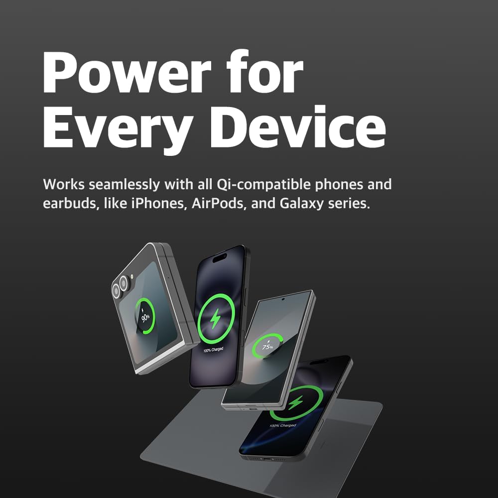 🌎 Universal Qi Compatibility: Works seamlessly with all Qi-enabled devices—just place and charge instantly, no cables required.