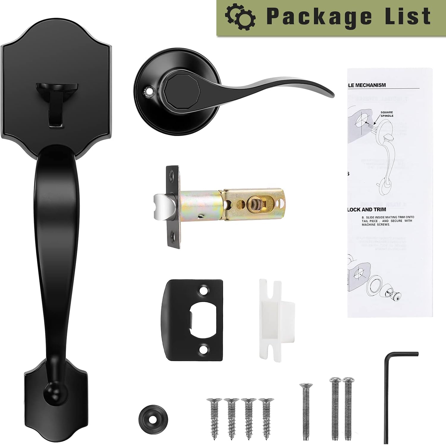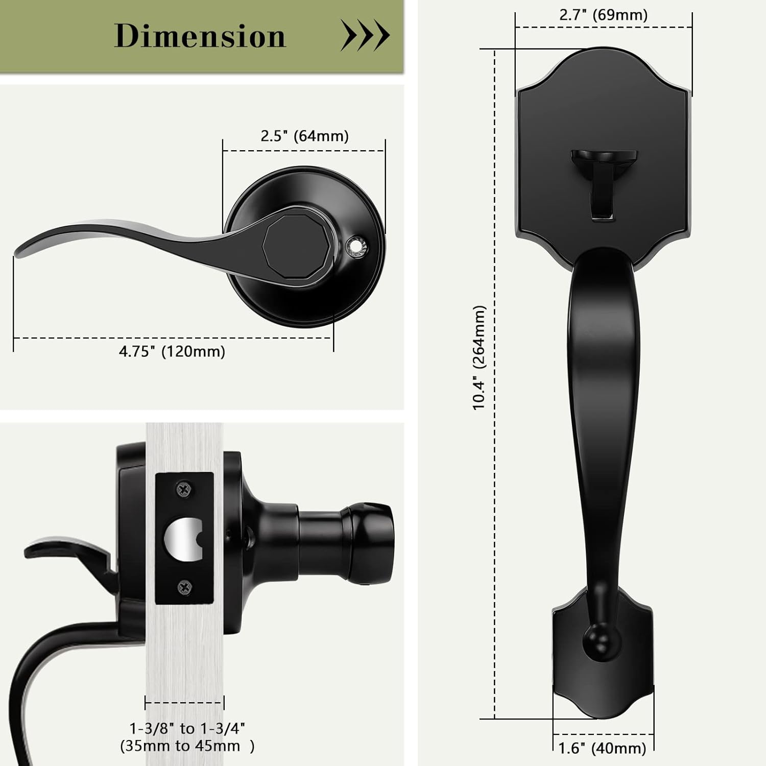 【Heavy-Duty & Durable】Tinewa Black Front Door Handle is well-built with Heavy duty durable Zinc Alloy, Solid zinc alloy adopts advanced electroplating spray paint and has high-strength anti-corrosion ability, smooth surface without impurities. Upgraded thumb press structure will make this entry handle never break.