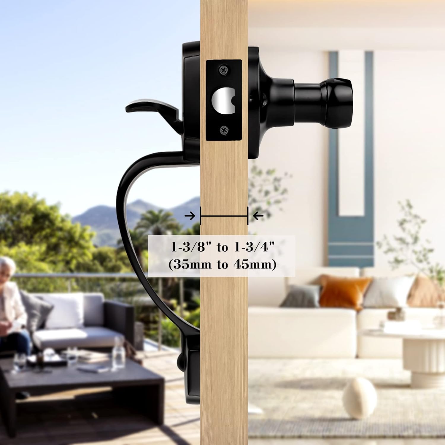 【Fit Standard Door】Universal latches fit 2-3/8″ (60mm) or 2-3/4″ (70mm) backsets. Door thickness range: 1-3/8″ (35mm) to 1-3/4″ (45mm) thick.