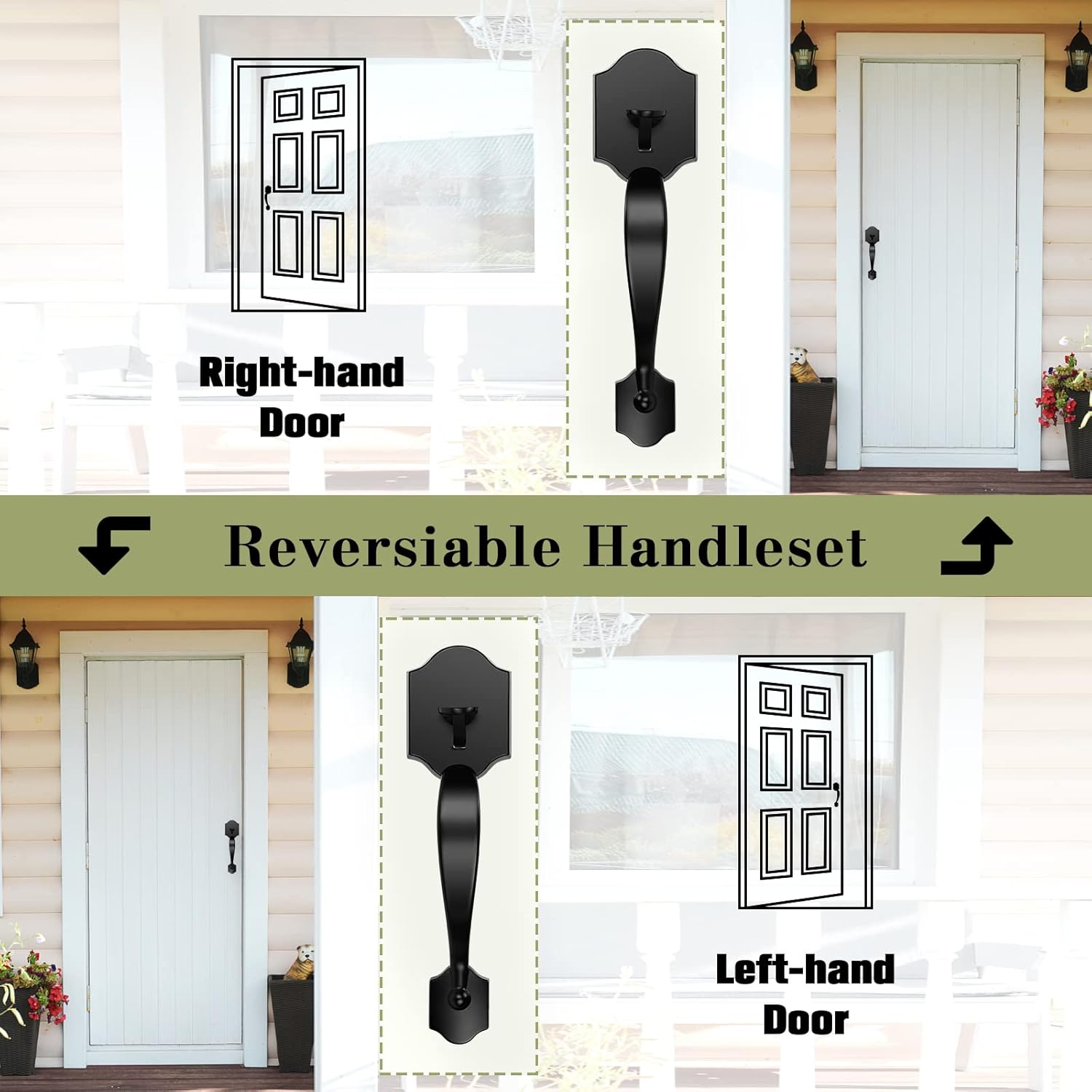Be the first to review “Single Cylinder Exterior Handleset, Keyless Front Door Handle with Lever Inside, Low Profile Front Lock Handleset with Halifax Black Finish, Reversible for Right & Left Sided”
