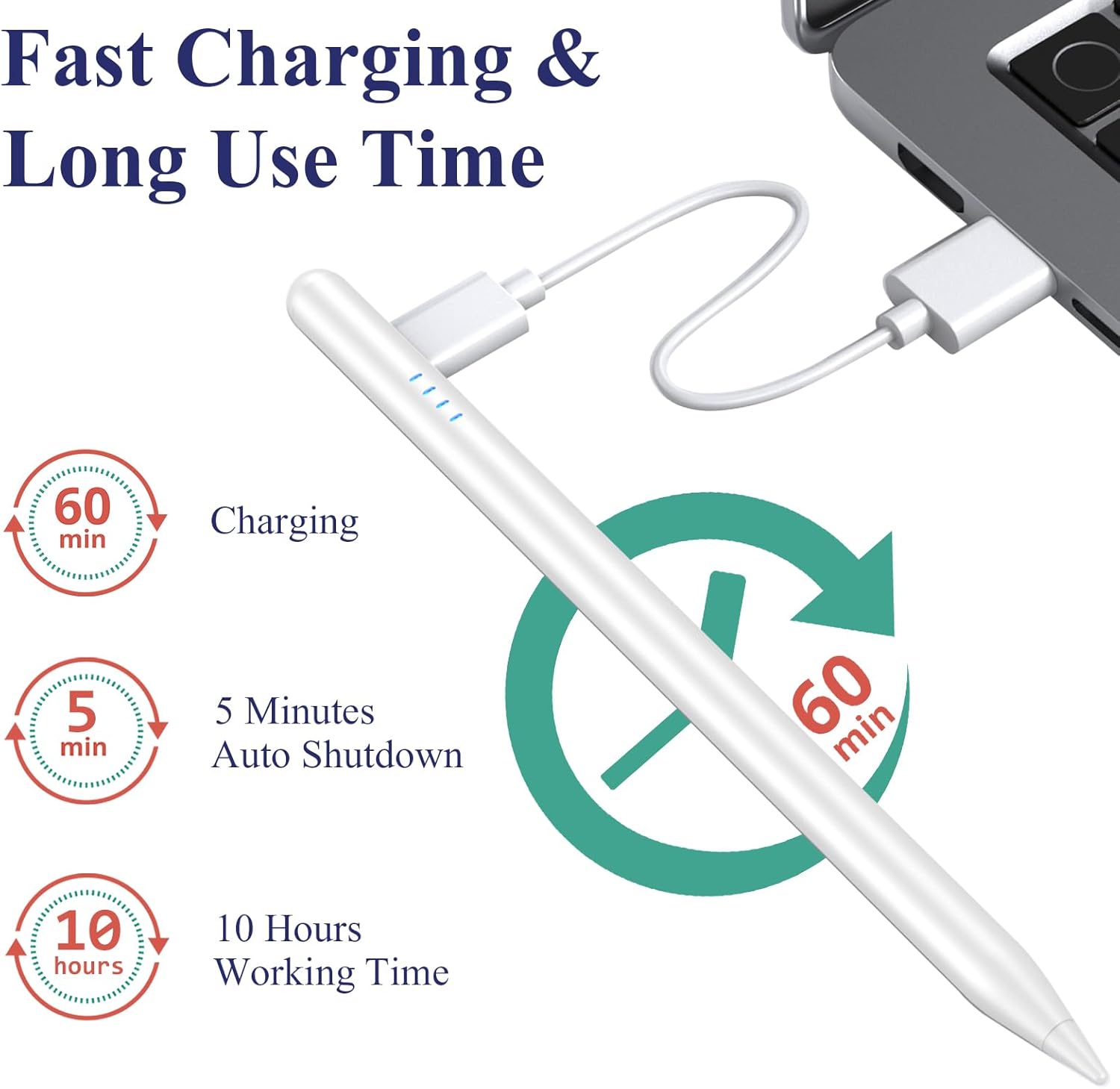 【Fast Charging and Long Battery Life】 Kenkor iPhone stylus with USB-C cable, with a USB-C cable, takes 60 minutes to fully charge and lasts up to 10 hours. This iphone pen can be used for 65 days in standby mode, and the smartphone stylus is equipped with intelligent power-saving features that automatically enter “sleep mode” after 5 minutes of inactivity to conserve power and avoid unnecessary battery drain