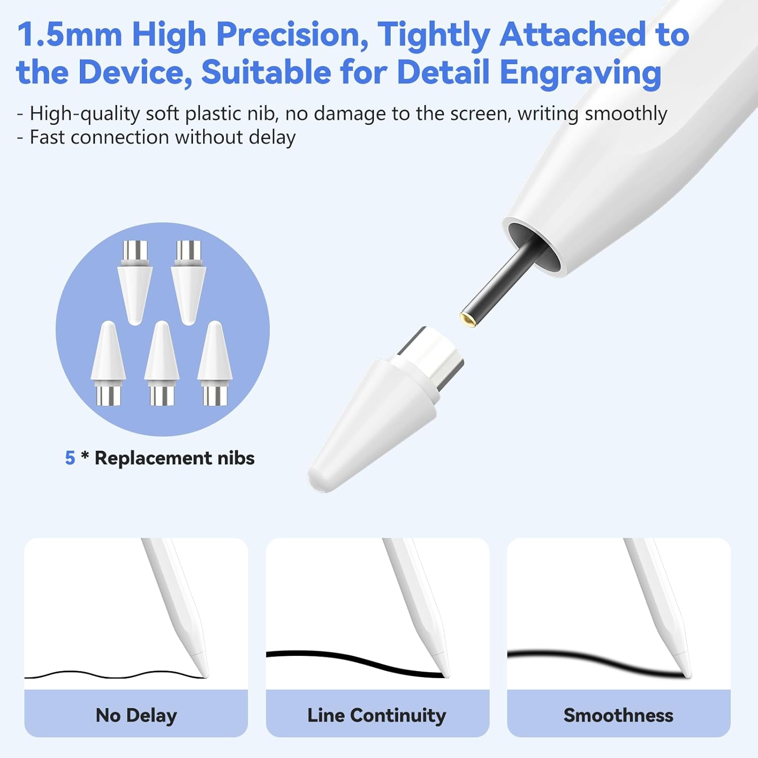 ✍️【High – Precision Writing】There will be no issues like disconnection, delay, or misalignment during use. Using the same pom – material tip as the genuine Apple Pencil effectively reduces friction and protects the screen. (Not compatible with iPad and Microsoft Tablet devices).