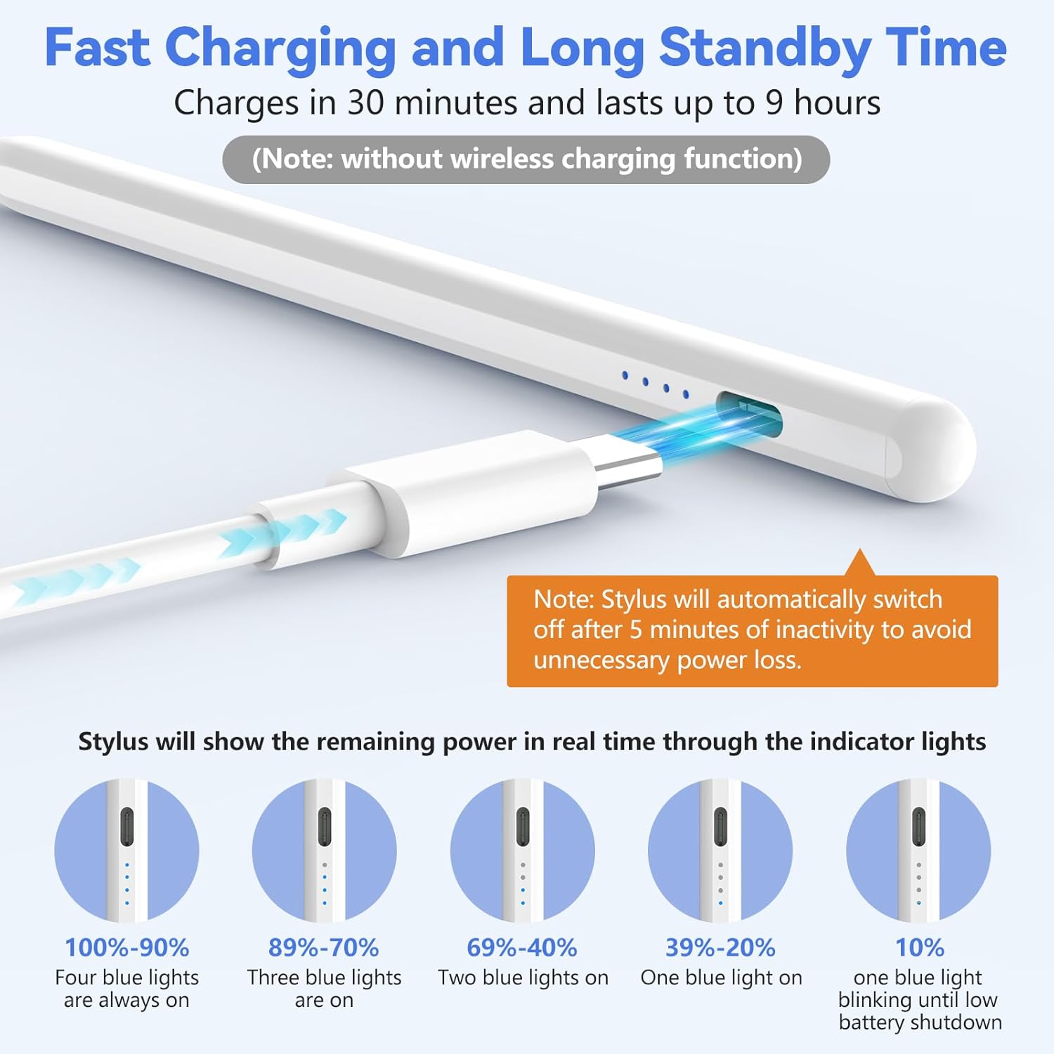 ⚡【2X Super Fast Charging & Long – Lasting Battery Life】This Android stylus pen only needs to be charged for 30 minutes and can then work continuously for 12 hours with a standby time of over 30 days.