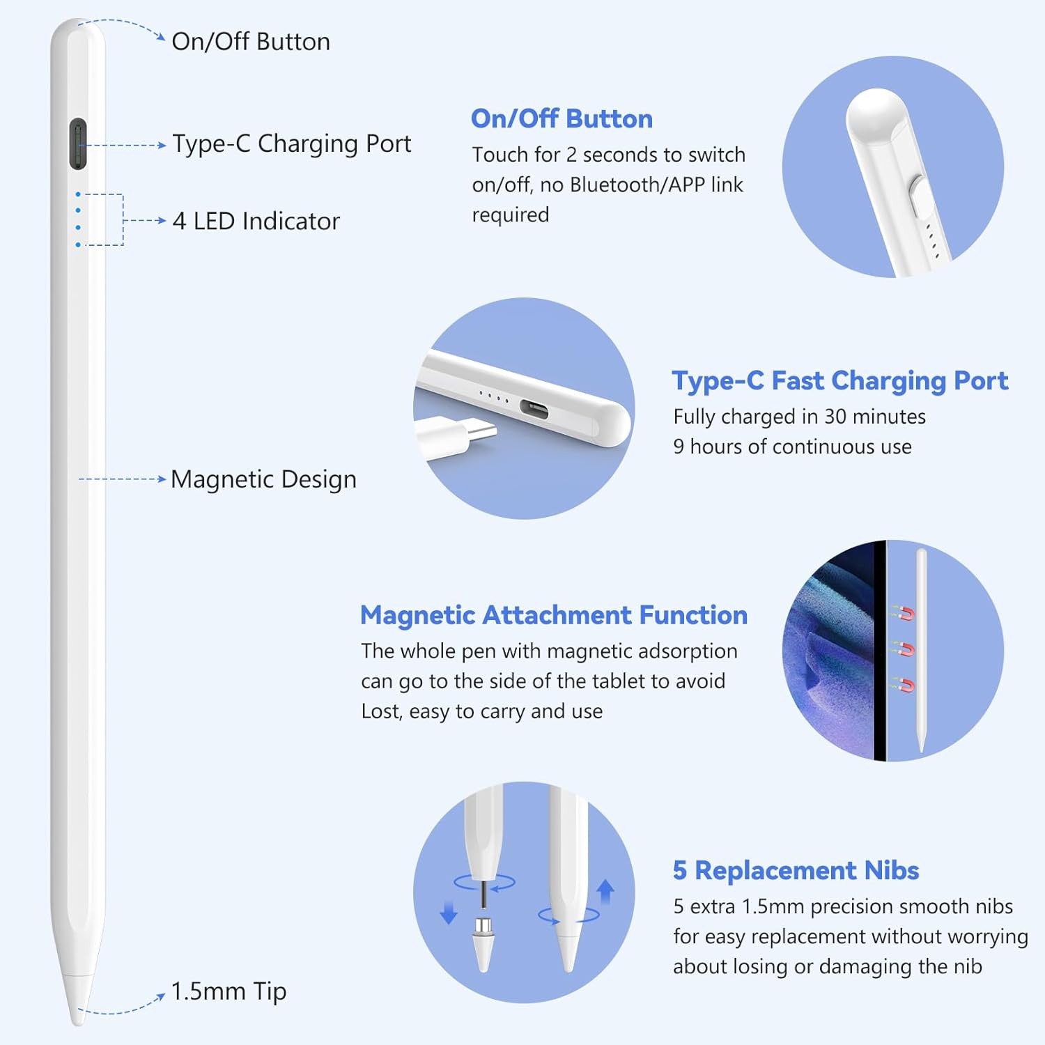 Stylus Pen for Touch Screen,2X Super Fast Charge Stylus Pen for Samsung/Tablet/Phone, Android, High Precision Magnetic Universal Stylus Pencil for Android (White)