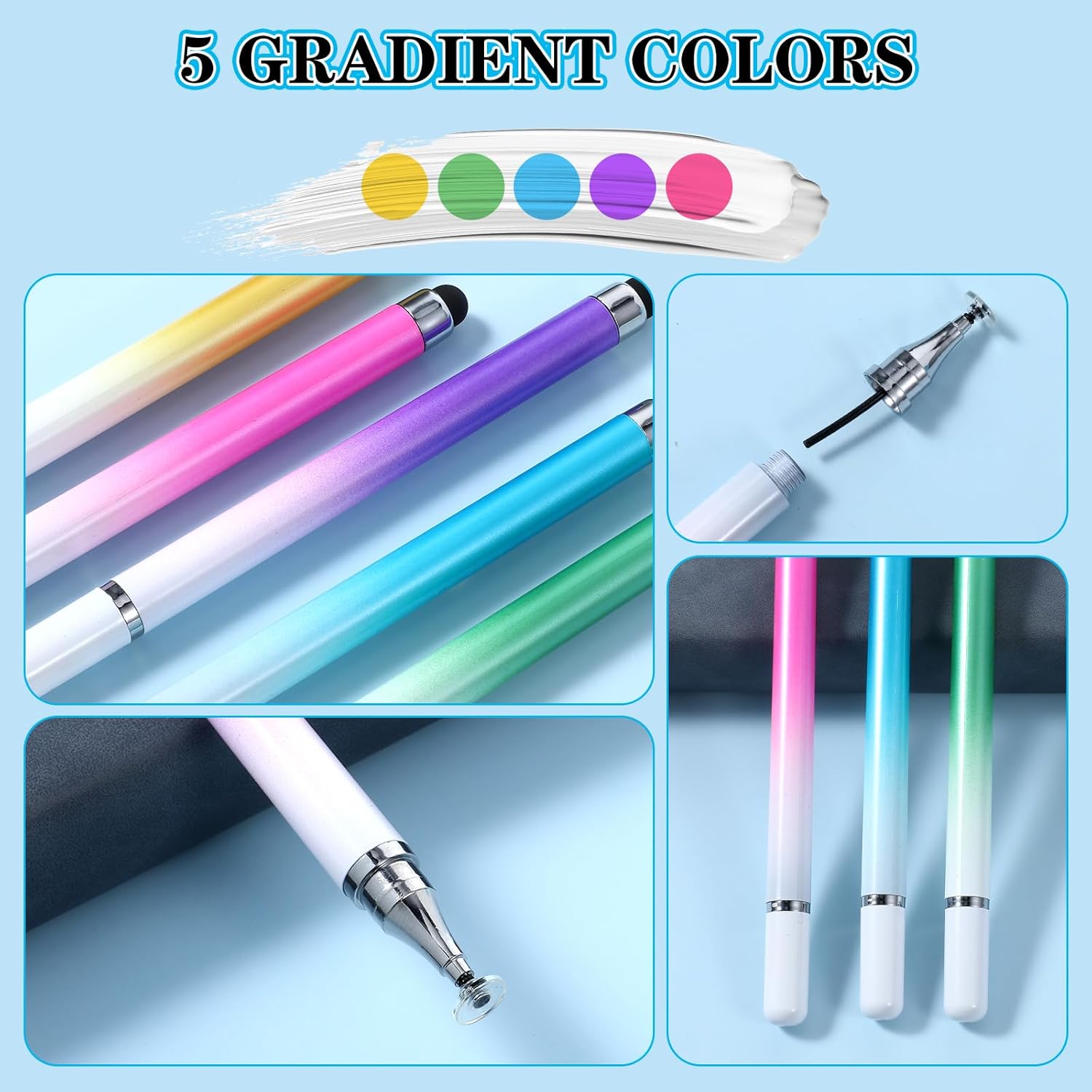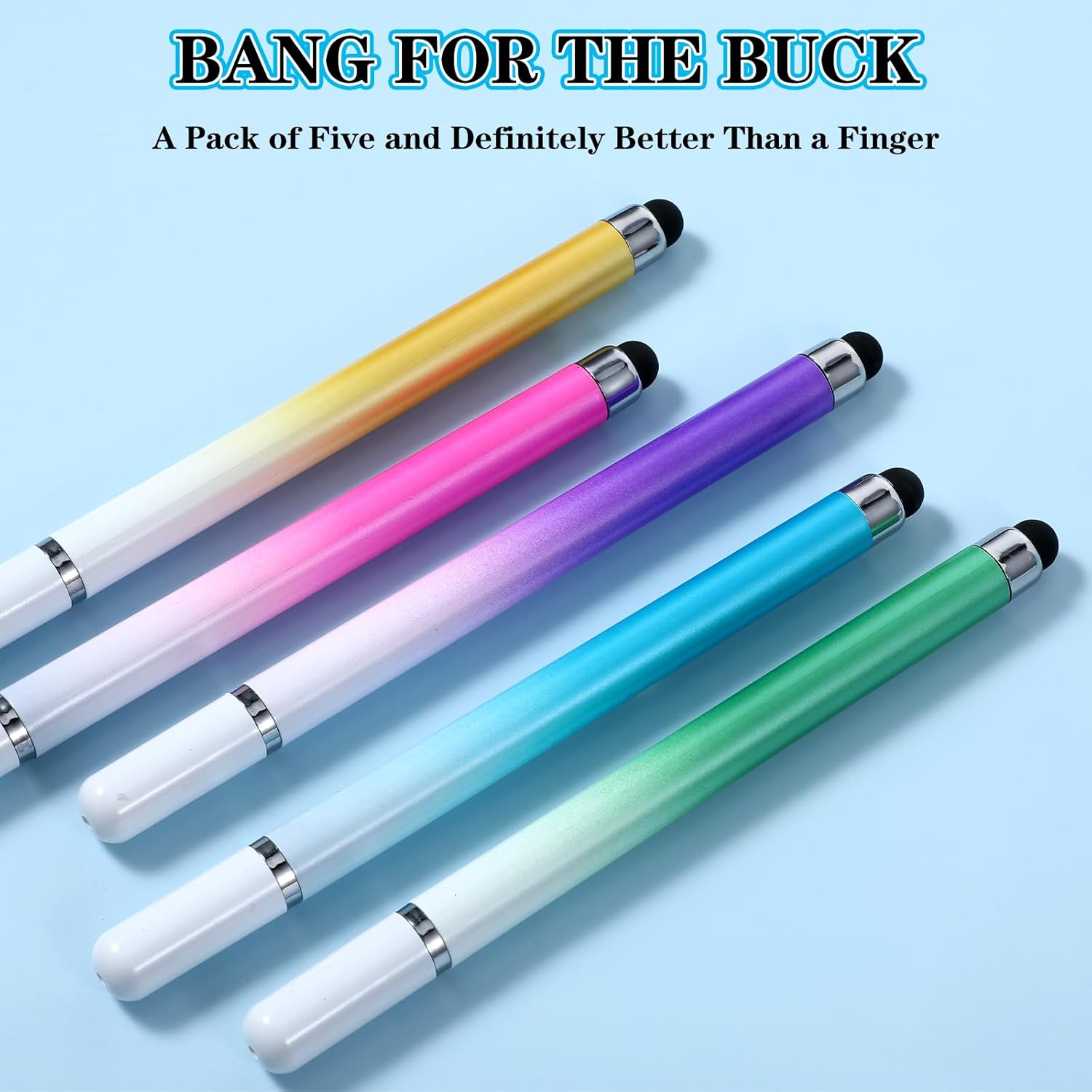 Stylus Pens for Touch Screens 5pcs Universal 2 in 1 Stylus Pen High Precision and Sensitivity for Pad, Phone, Smartphone and Tablets All Universal Touchscreen Devices