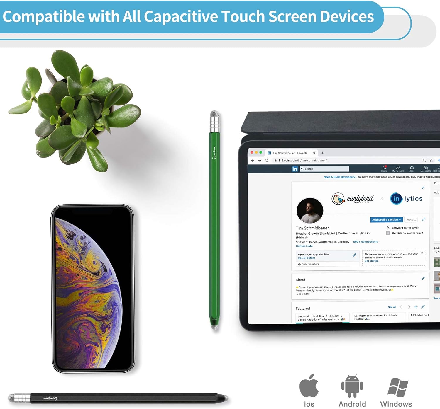 ✏️【UNIVERSAL CAPACITIVE STYLUS 】Compatible with all capacitive touch screen devices, including iPad, iPad Pro, iPhone, Android tablets & smart phones, Samsung galaxy and so on.