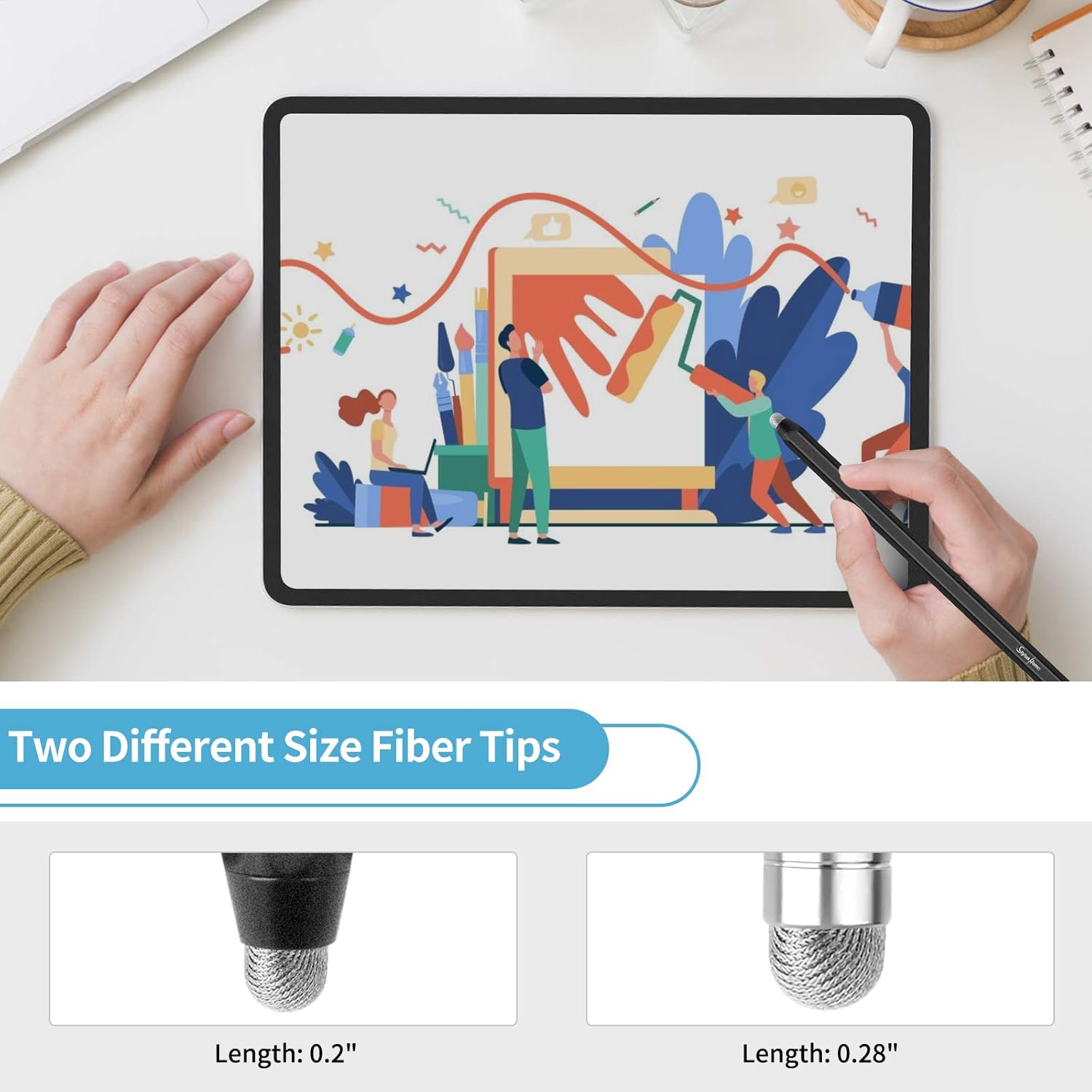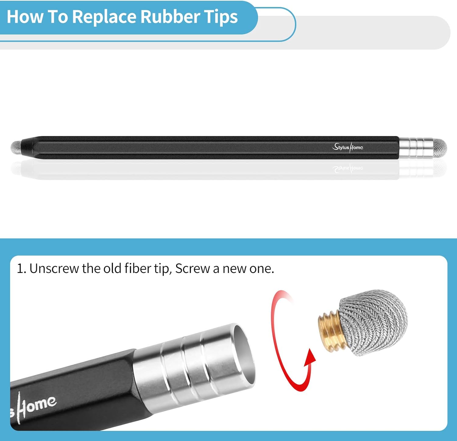 ✏️【REPLACEABLE FIBER TIPS】These stylus pens both two ends fiber tips are replaceable. Replacing can be done within seconds without tool. 8 extra replacement fiber tips included (4 small fiber tips and 4 large one), effectively extend lifetime of the stylus.