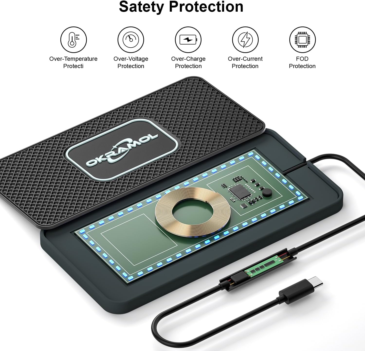 New Design Safety Function:Designed with secure PCB motherboard and LED indicator light to ensure the charger does not overheat; offering increased charging efficiency and this wireless pad is made by multifunctional intelligent protect technology which provides safely charging environment on overvoltage protection, temperature control, overcurrent protection, and short circuit protection ;no worry about water or coffee splashed on it because its Water-Resistant