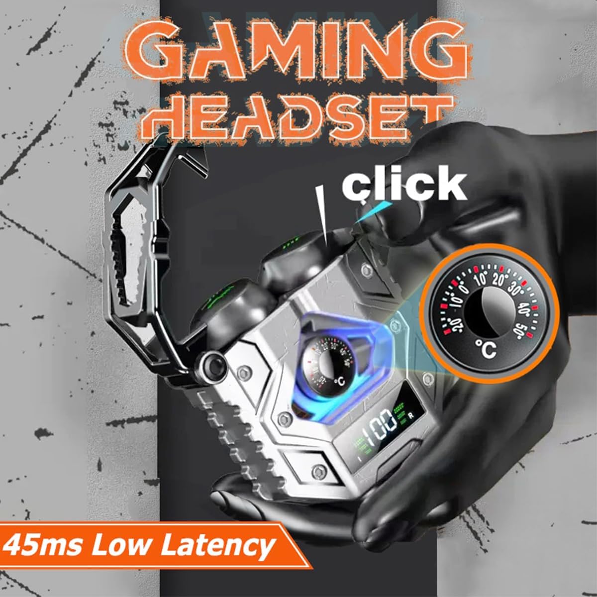 Wireless Earbuds,Gaming Bluetooth Earbuds with Charging Case LED, 45ms Low-Latency Stereo for Gaming/Running/Fitness/Work (Mecha Style)