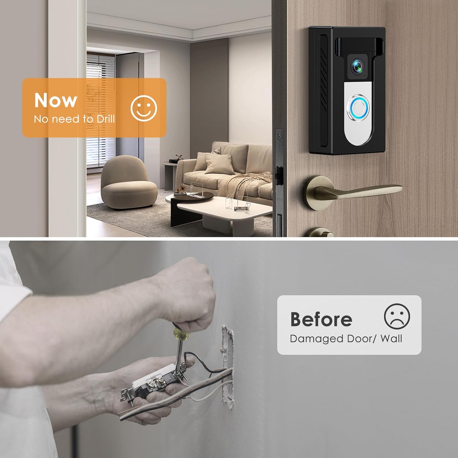Hassle-Free Setup: No drilling required for this video doorbell holder! Simply peel, stick, and wait 24 hours. For rough surfaces, use the included screws.