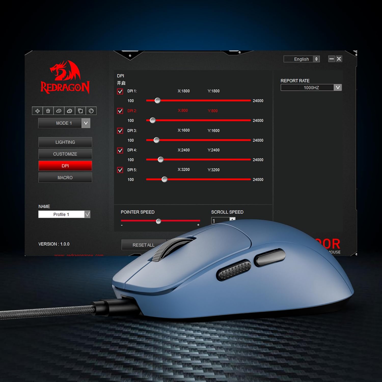 Redragon M817 Wired Gaming Mouse, 24000 DPI Optical Mice with 5 Programmable Buttons & Ergonomic Design, 37G Ultra Lightweight, Software Supports DIY Keybinds, Blue