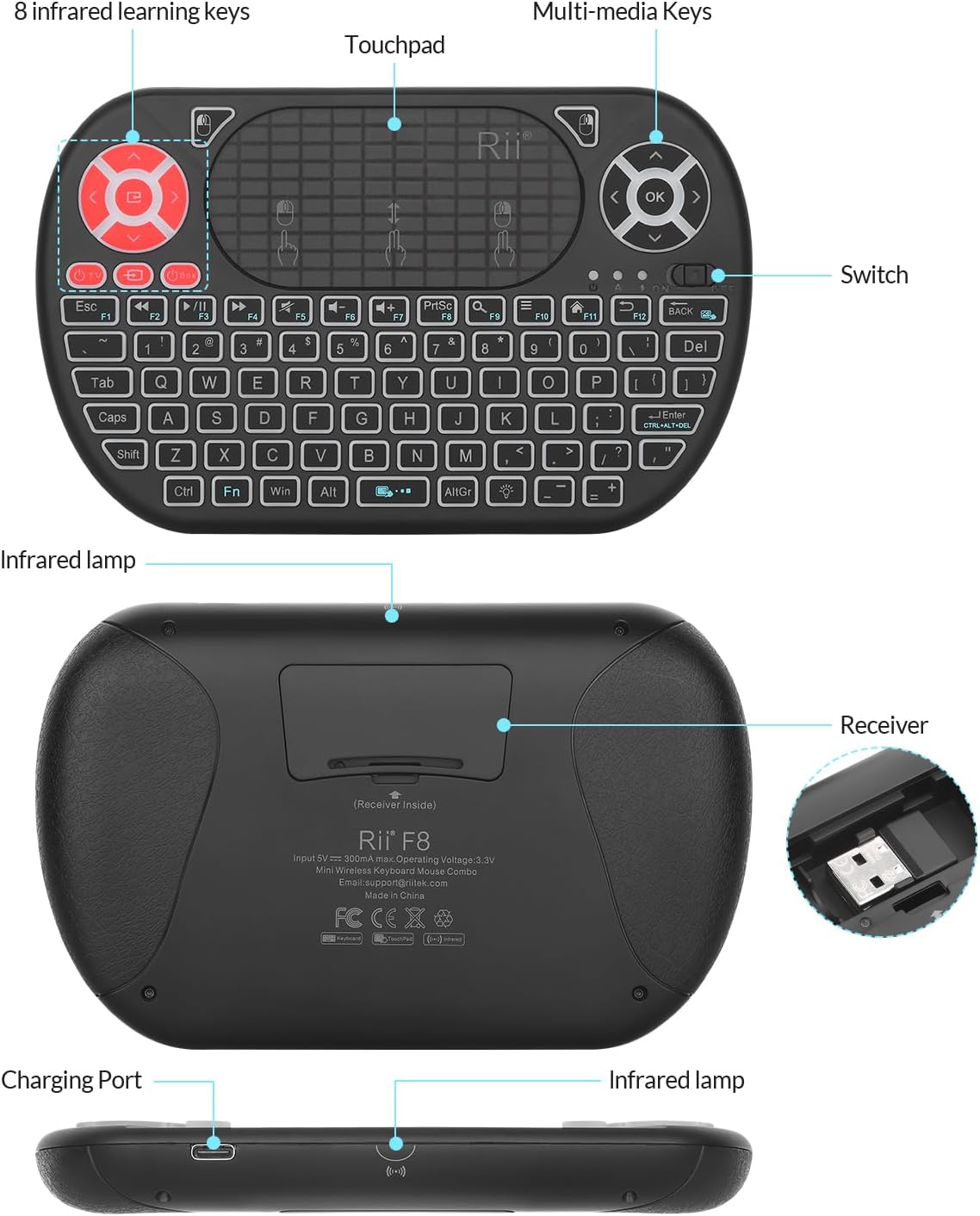 【Widely Compatibility】This mini keyboard mouse combo perfect for PC, Andriod TV Box, Smart TV, x-box, Raspberry PI, TV Box, PS3, HTPC/IPTV, desktop, laptop, etc. If there is not a USB port, you need to prepare a OTG cable.