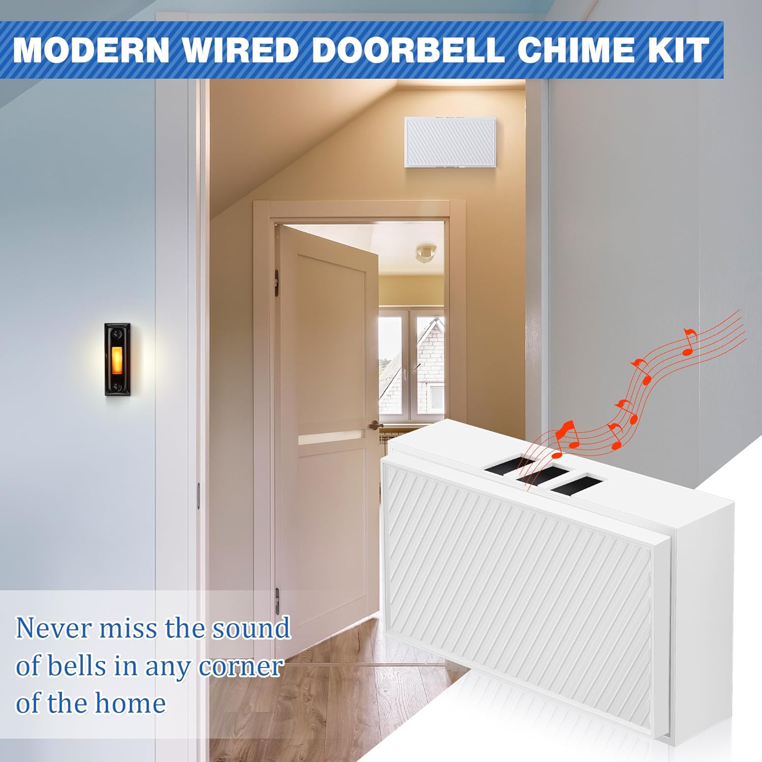 Door Bell Kit With Chime Compatibility: the wired doorbell kit is only for 16V 10VA transformer apply, please measure the voltage value accurately before connecting the power supply to avoid a short circuit; Suitable for mounting to any surface, the door bell hard wired is also loud enough to be heard in any corner of the room