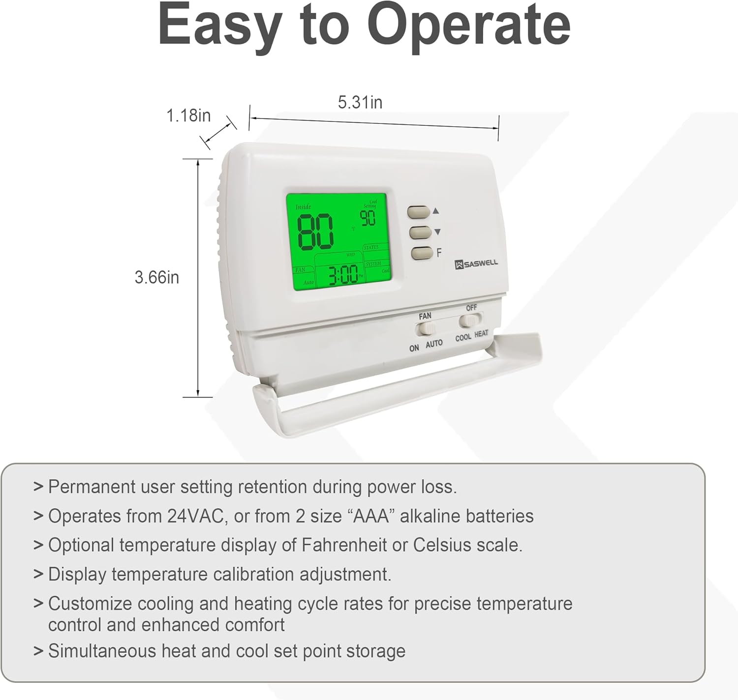 【Wide Compatibility】This household thermostat supports single-stage heating and cooling systems, heat pumps without auxiliary heating, hydronic heating, boilers, gas fireplaces (24V), and 750 millivolt systems. Works seamlessly with gas, electric, and oil furnaces. Note: Before making a purchase, please ensure that the product description match your existing thermostat (verify that the base supports only 2 to 5 wires).