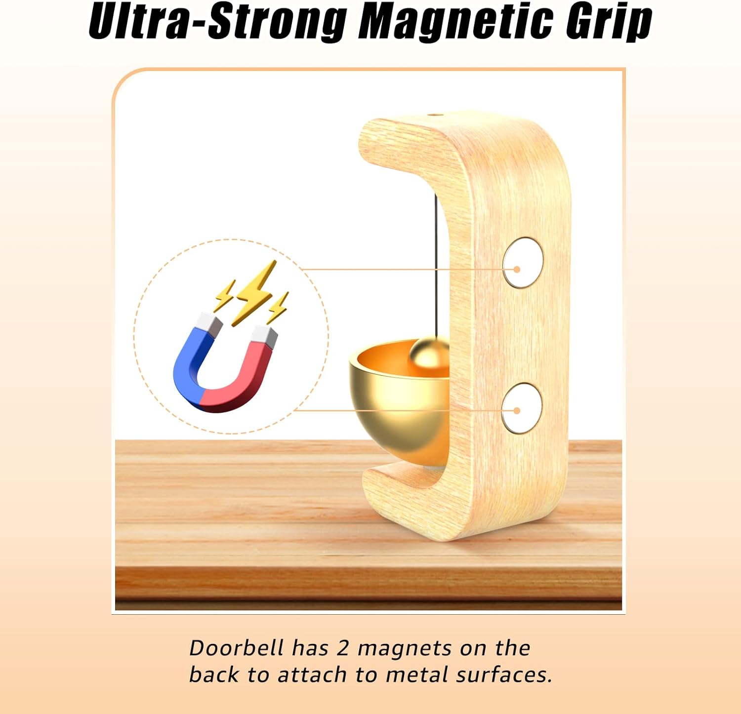 Shopkeepers Bell for Door Opening – Magnetic Shopkeepers Bell Chime When Door Opens,Brass & Nature Wood Material Design,Door Bells for Store Entrance,Cafe & Glass Doors,Creative Housewarming Gift