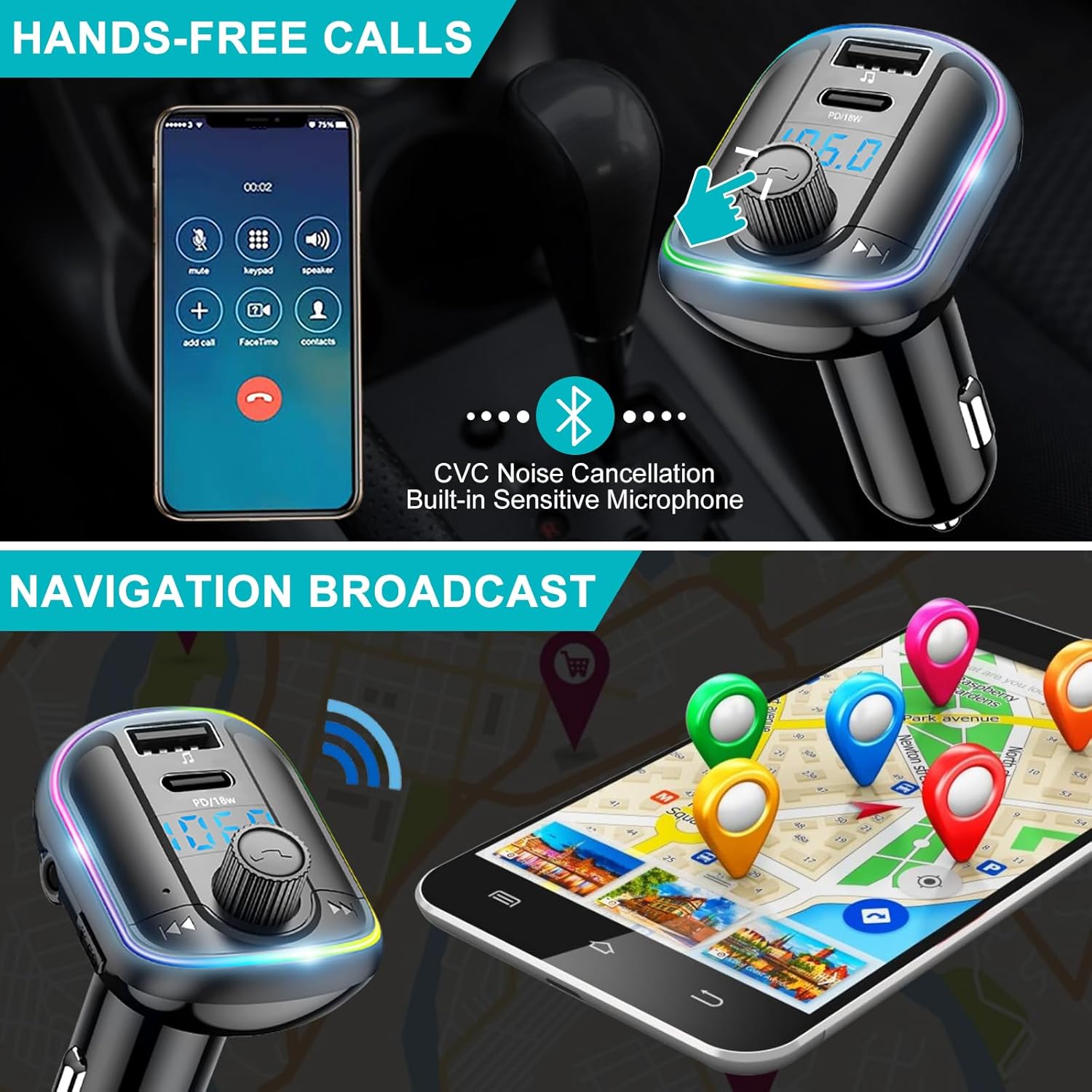 Enjoy Hands-free Calls: This FM Transmitter with noise cancellation technology reducts echo or background noise effectively and ensures high quality conversation. One button to answer, reject, hang up or redial calls, super easy to use.
