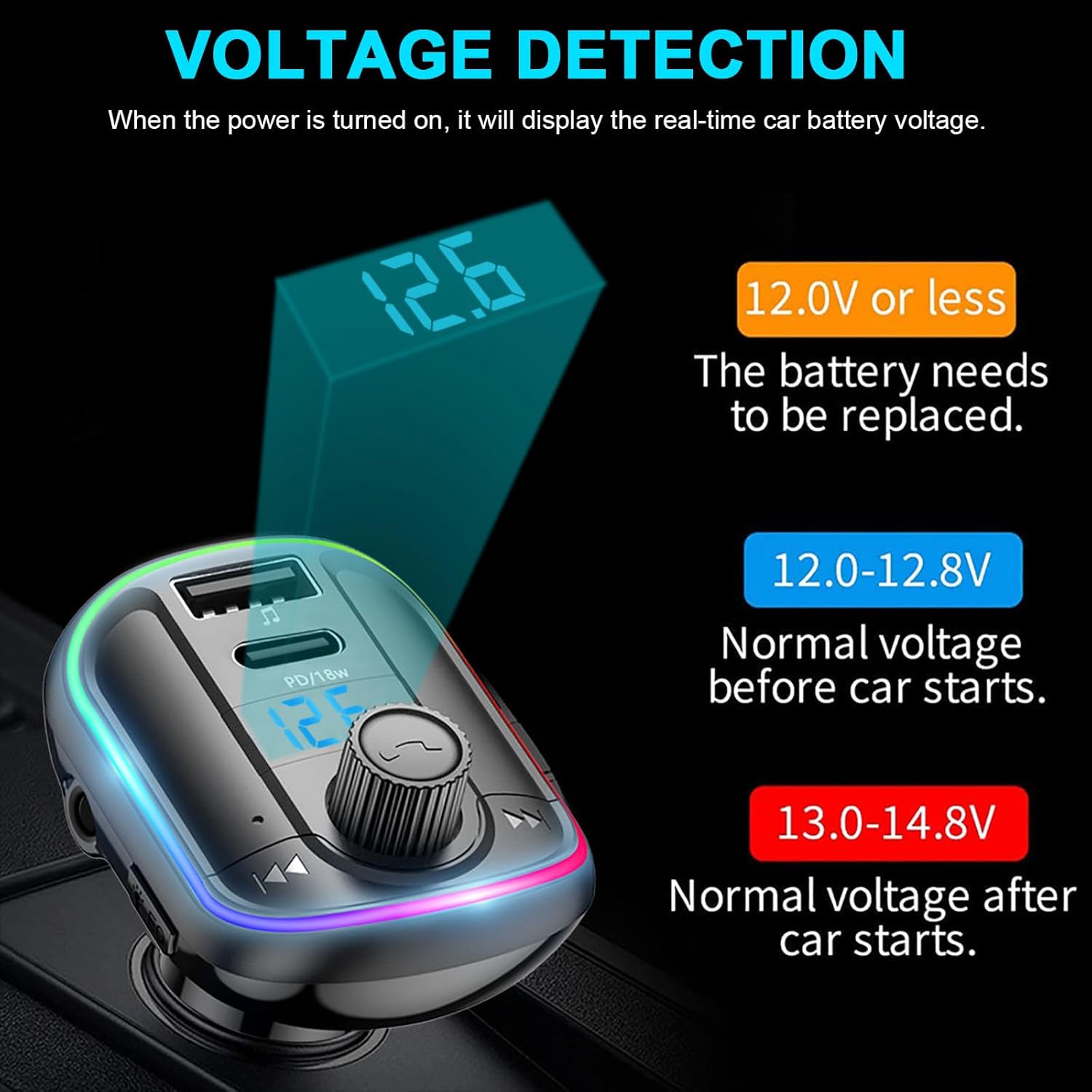 Safety Function: Equipped with a voltage detection function to show you the condition of your car battery and ensure safty dirve.