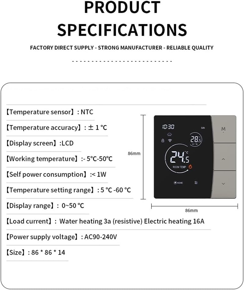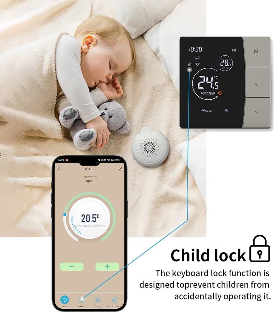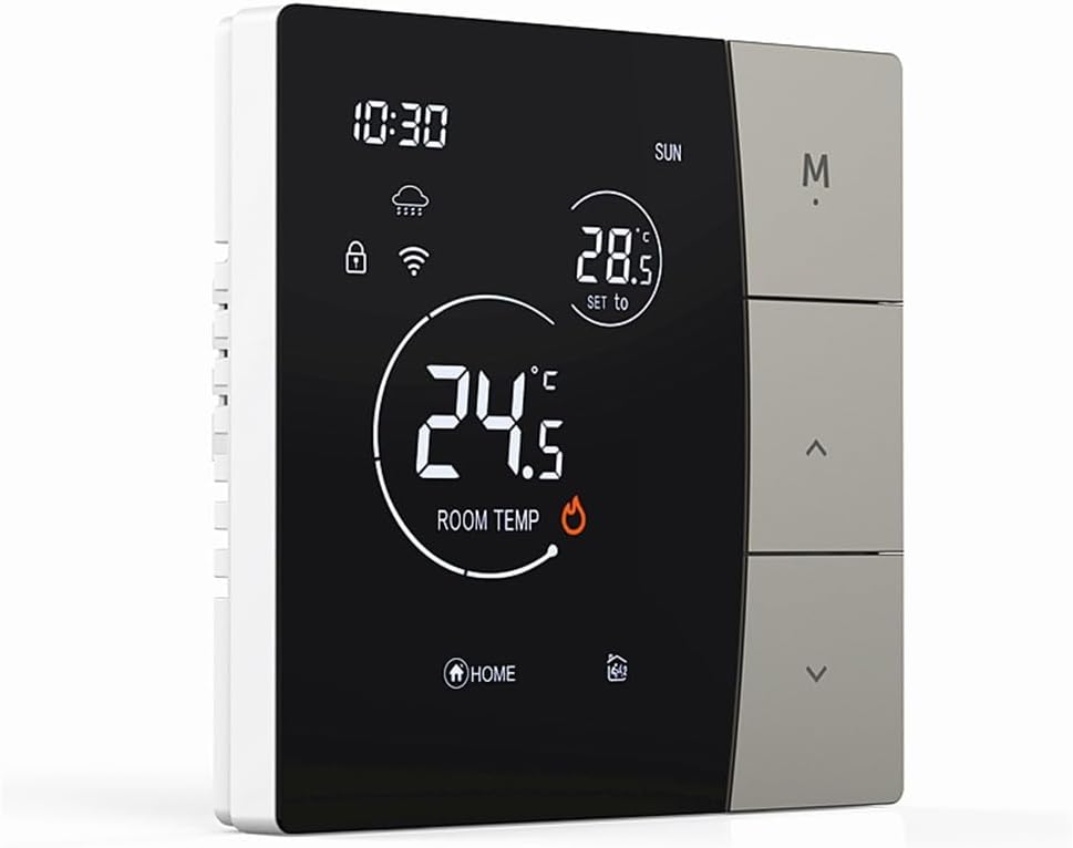 *Stylish and Modern Design: Featuring an elegant key, this thermostat not only enhances the functionality of your heating system but also adds a touch of sophistication to your home décor.