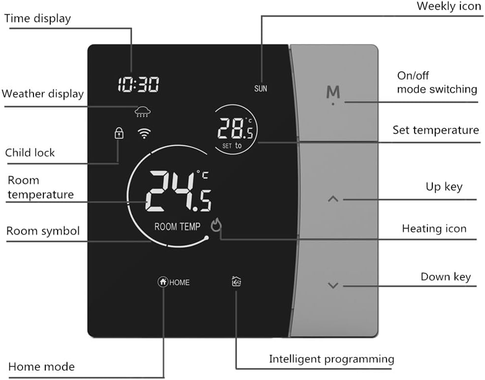 *Stylish and Modern Design: Featuring an elegant key, this thermostat not only enhances the functionality of your heating system but also adds a touch of sophistication to your home décor.