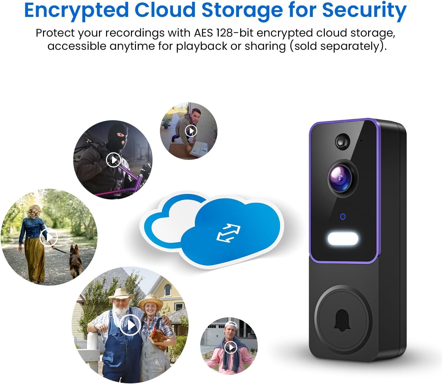 Smart Video Doorbell Camera, AI Human Detection, Live View, 2-Way Audio, Included Chime, Color Night Vision, 2.4G WiFi, Cloud Storage, Wireless Indoor/Outdoor Surveillance Cam (Purple)