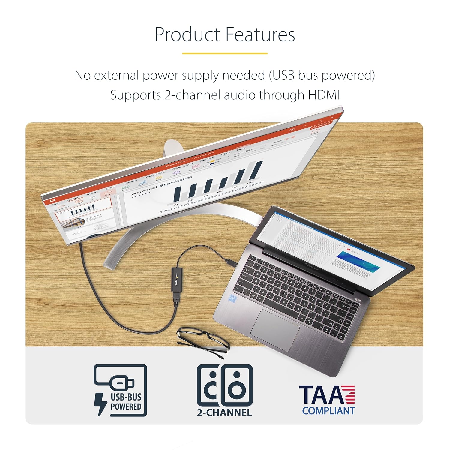 INCREASE YOUR PRODUCTIVITY: USB to HDMI monitor adapter lets you extend your desktop by adding an HDMI monitor to your laptop or desktop computer; Ideal for your workstation setup in the office or working from home