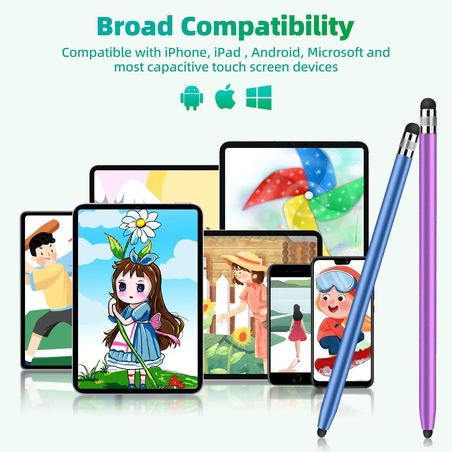 [Wide Compatibility] This stylus is widely compatible with a range of devices including iPads, iPhones, Android devices, Chromebooks, Surfaces, laptops, PCs, e-readers, and more. It is specifically designed to work with almost all capacitive touch screen devices, providing a seamless and responsive touch experience across multiple platforms.