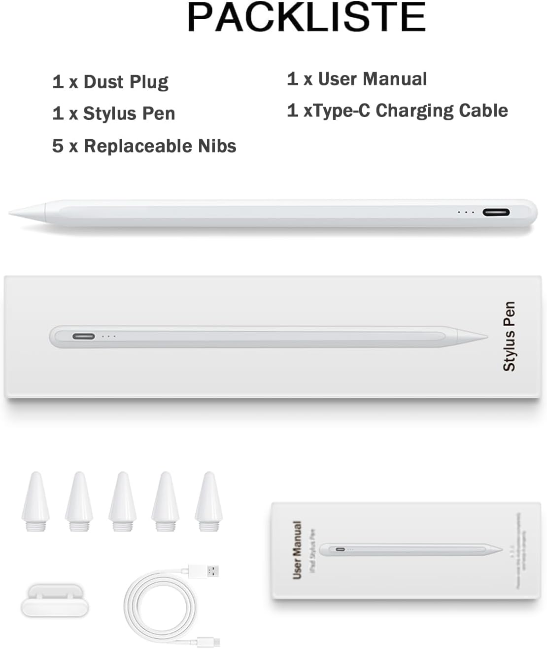 【High Precision & Smooth】The ipad pencil 10th generation is equipped with a 1.5mm POM tip,16.5 cm long, weighing 16 grams,more accurate, more sensitive, no lag, no jump, no scratch, no delay to make the writing and drawing more smooth.In addition,this ipencil 2nd generation includes 4 replacement pen tips, which significantly extend the life of the touch pen.【 Note 】The stylus pen no pressure-sensitive design.