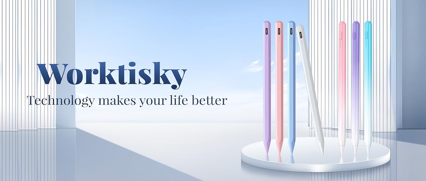 Worktisky Apple Stylus Pen Designed for iPad (2018-2025) Perfect For Writing, Darwing, Painting, Taking Note, Working, Studying