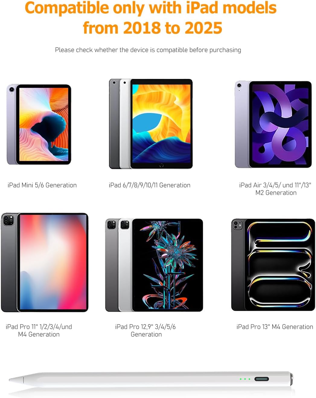 ✅ Broad Compatibility & Warranty – Supports iPad 6–10th Gen, iPad Pro 11”/13” (M4), 12.9” (3–6 Gen), Air 3/4/5/M2/M3, Mini 5/6/7. Not compatible with older iPads, iPhones, Android, or Windows. 12-month return warranty included.