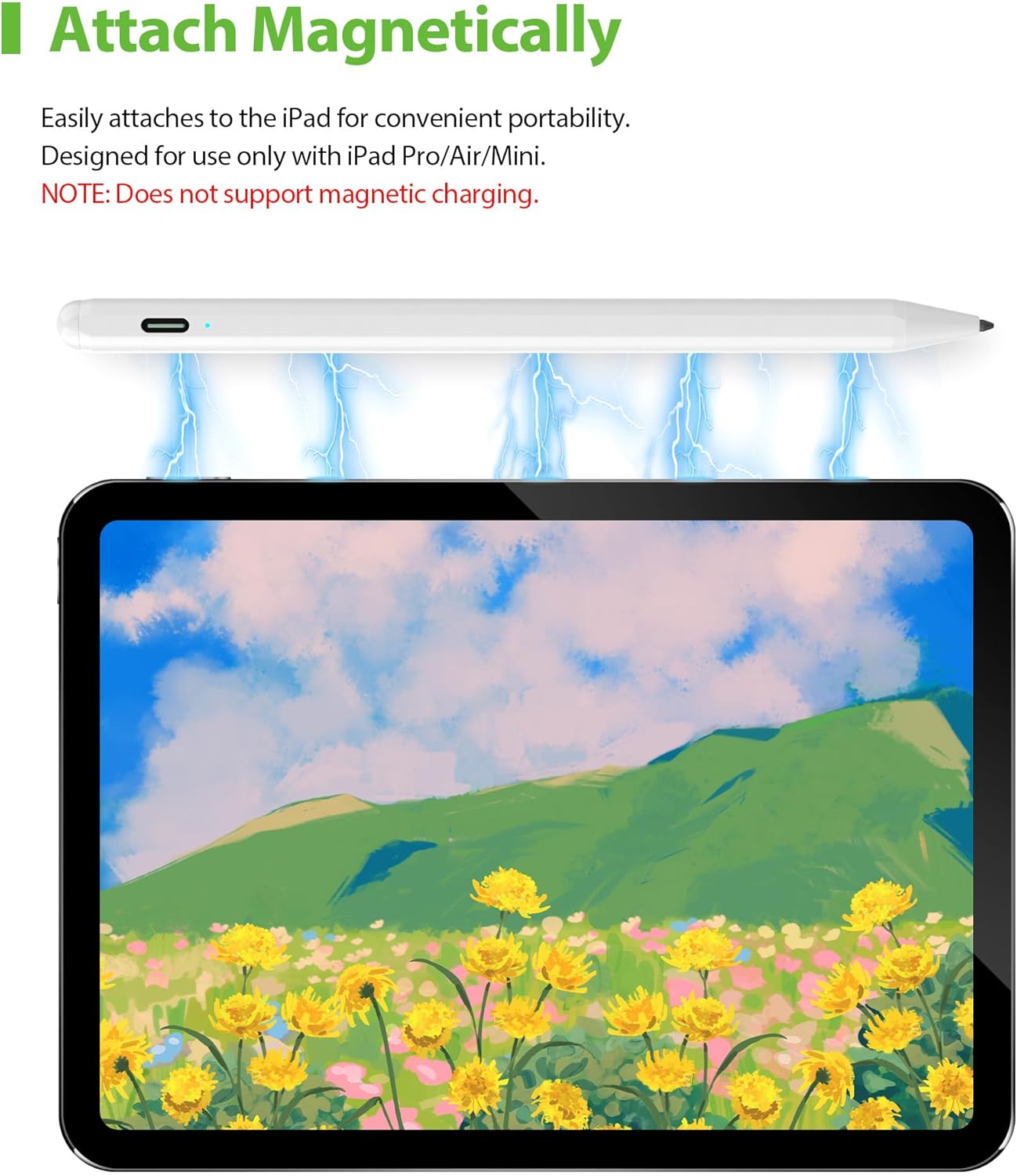 COMPATIBLE WITH 2025-2018 IPADS: This stylus pen is compatible with a wide range of iPads, including iPad Pro M4 2024, iPad Air M3 2025 /M2 2024, iPad 11th A16 2025 /10th/9th/8th/7th/6th Gen, iPad Pro 12.9″ (7th/6th/5th/4th/3rd Gen), iPad Pro 11″ (5th/4th/3rd/2nd/1st Gen), iPad Air (5th/4th/3rd Gen), and iPad Mini (6th/5th Gen). NOT COMPATIBLE WITH IPHONE, ANDROID TABLETS, OR MICROSOFT DEVICES.