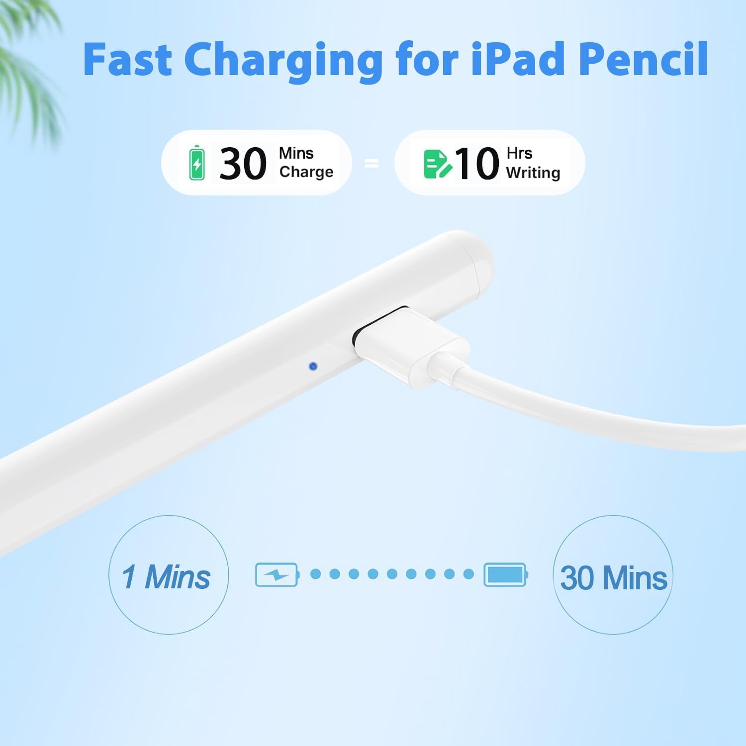 Stylus Pen for iPad A16 11th/10th Palm Rejection & Fast Charging Stylus Pen 2025-2018 Stylus Pencil for Apple iPad 11th/A16/10/9/8/7/6th,Pro 12.9/11/13 inch M4,Air M2/M3/5/4/3,Mini A17/5th/6th