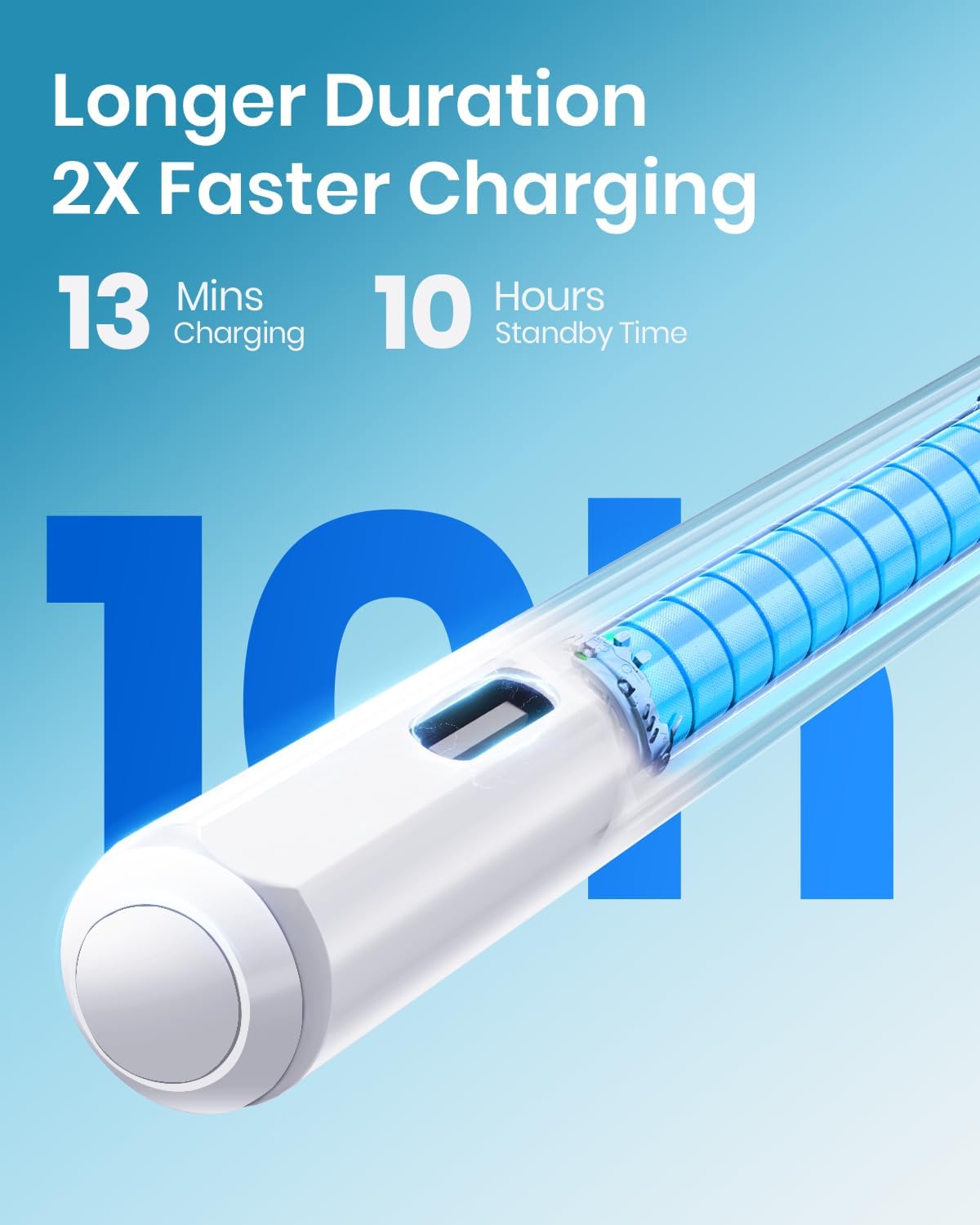 Stylus Pen for iPad(2018-2025)-2X Faster Charge with Tilt Sensitivity & Palm Rejection for iPad 11/10/9/8/7/6th Gen, Air 7/6/5/4/3/M3/M2, Pro 13″/12.9″/11″/M4, Mini 7/6/5th, White