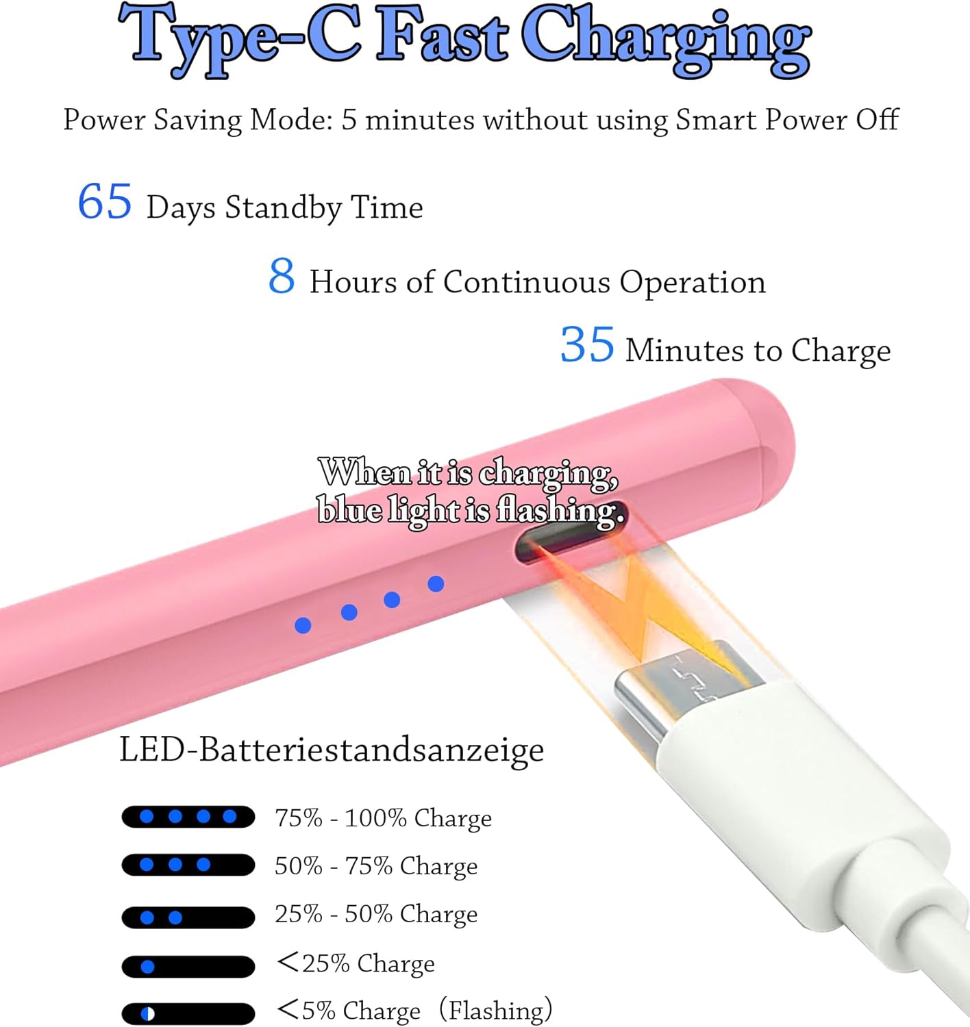 【Fast Charging & Long Battery Life】CMARS apple pencil 2nd generation With USB-C charging port and built-in battery, just only takes 35 minutes to fully charge and lasts up to 10-hours usage.This ipencil also features LED indicators to show the remaining battery power and charging progress, and this stylus for iPad can standby for 65 days. Built in saving units, it will automatically change to “Sleep Mode” after idling for 5 minutes to save power (Charged by USB Type-C, Included)