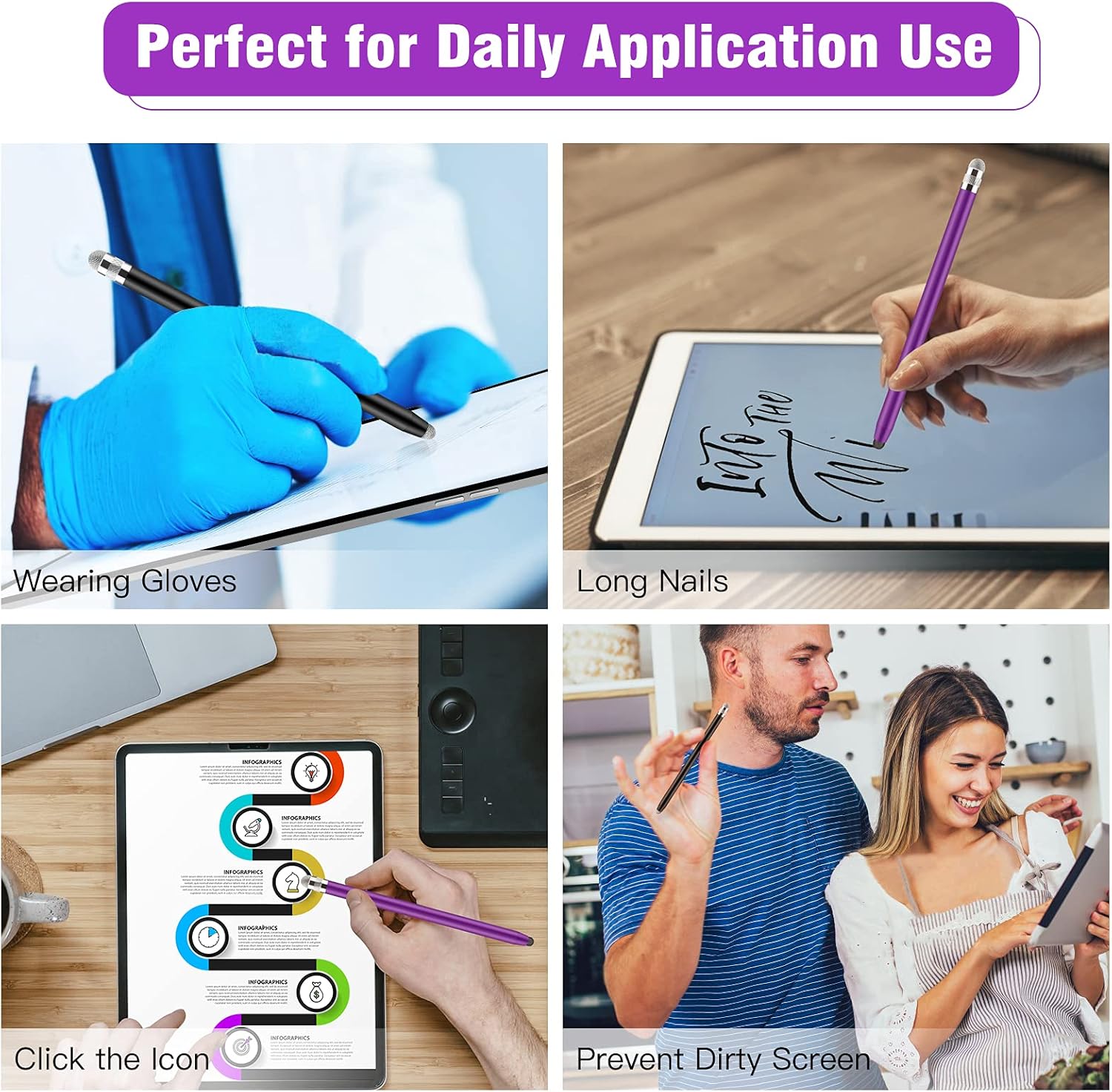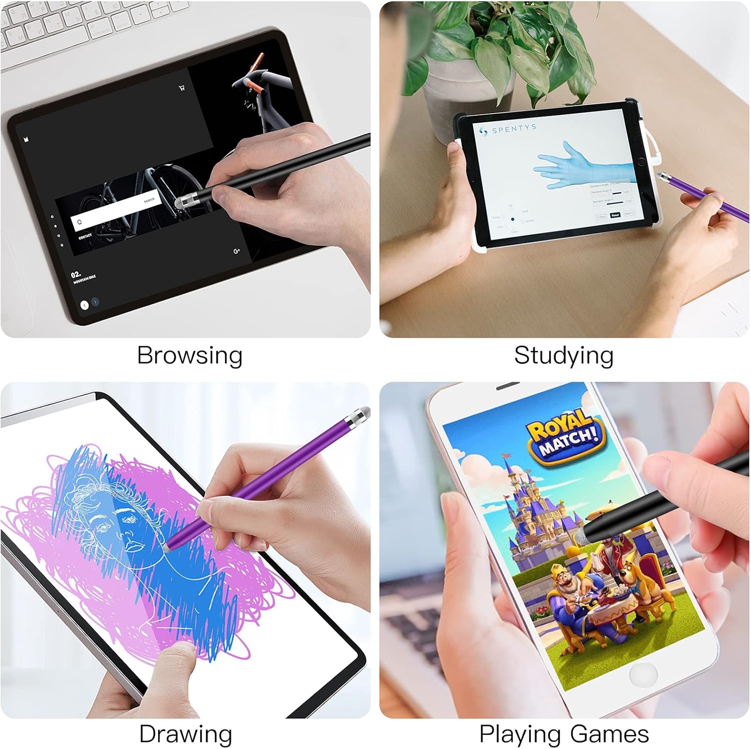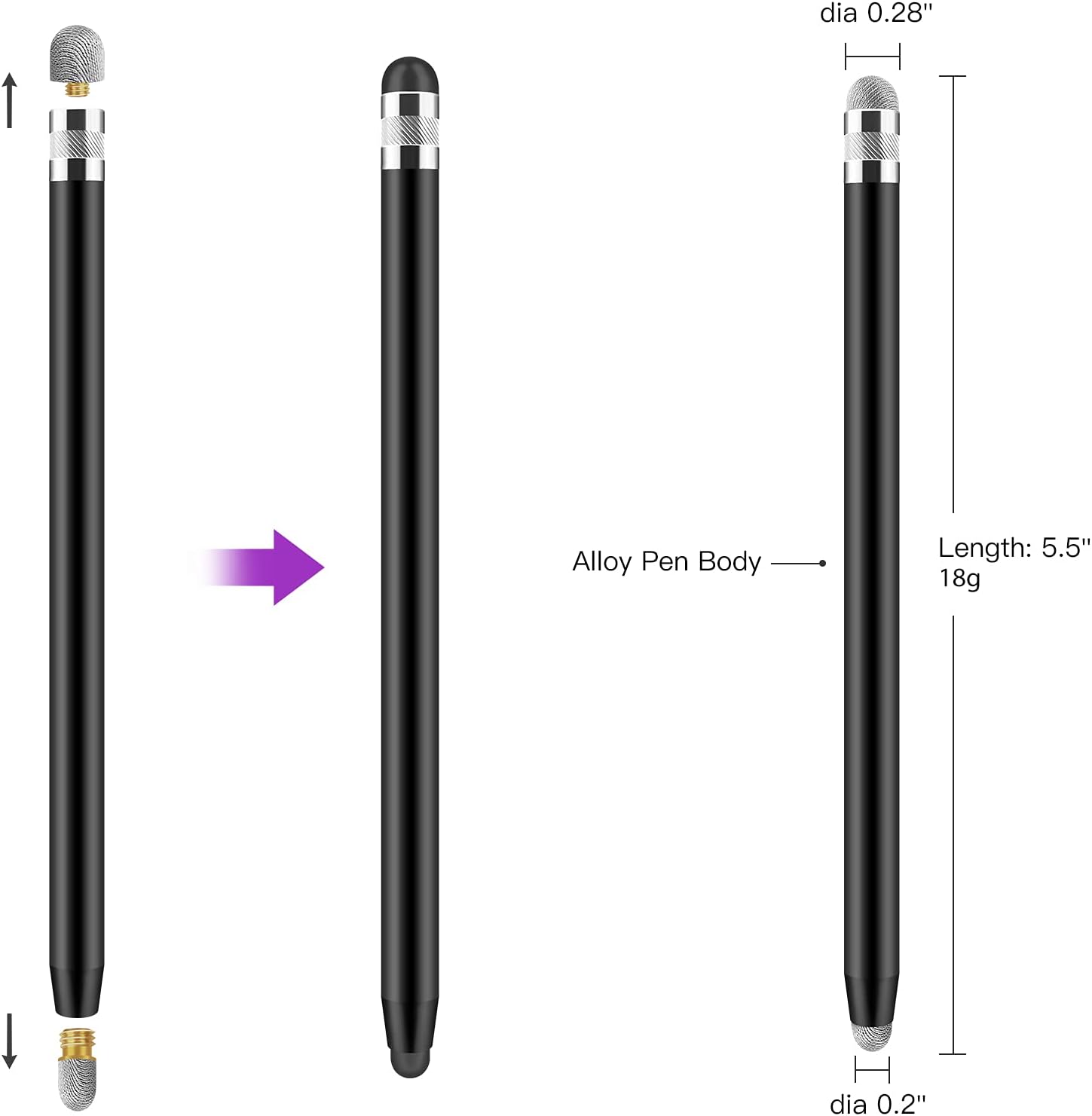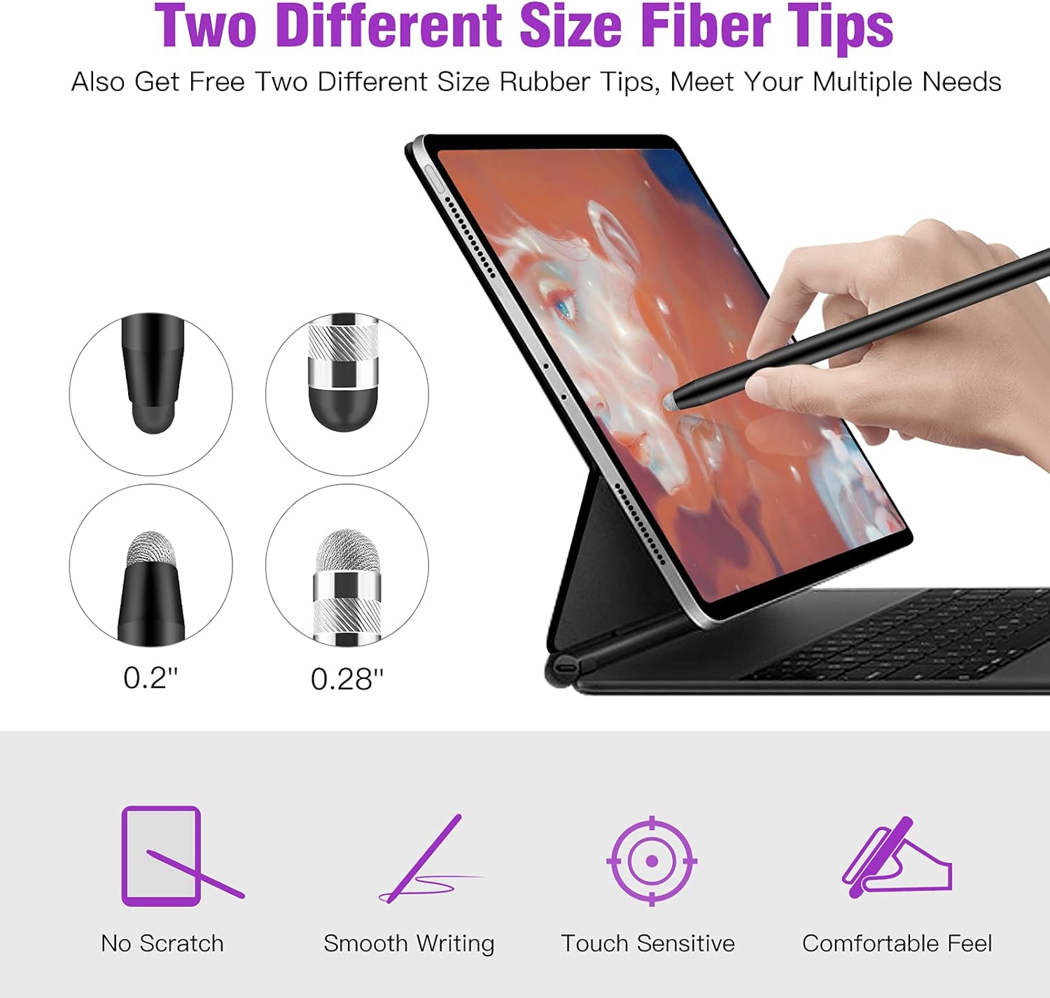 【4 In 1 Design Sensitive Stylus】- The two stylus pens come with 4 spare different touch tips,2 sizes fiber & rubber tips can be placed on each end,perfect for phones and tablets on daily use.One end smaller tip provides smooth drawing and senstivity handwriting experience on touch screens, the other end larger tip more accuracy than finger for click and browse on your phones and tablets.