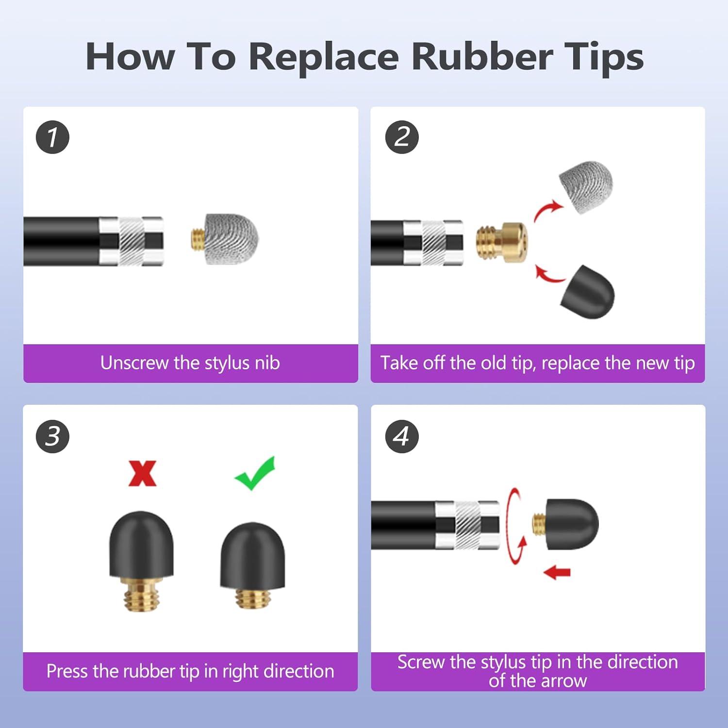 【Replaceable Fiber & Rubber Tips】 – These stylus pens both two ends fiber tips are replaceable, also can be changed replacement rubber tips on each end. Replacing can be done within seconds without tool.4 extra replacement fiber tips and 4 rubber tips, effectively extend lifetime of the stylus pencil.