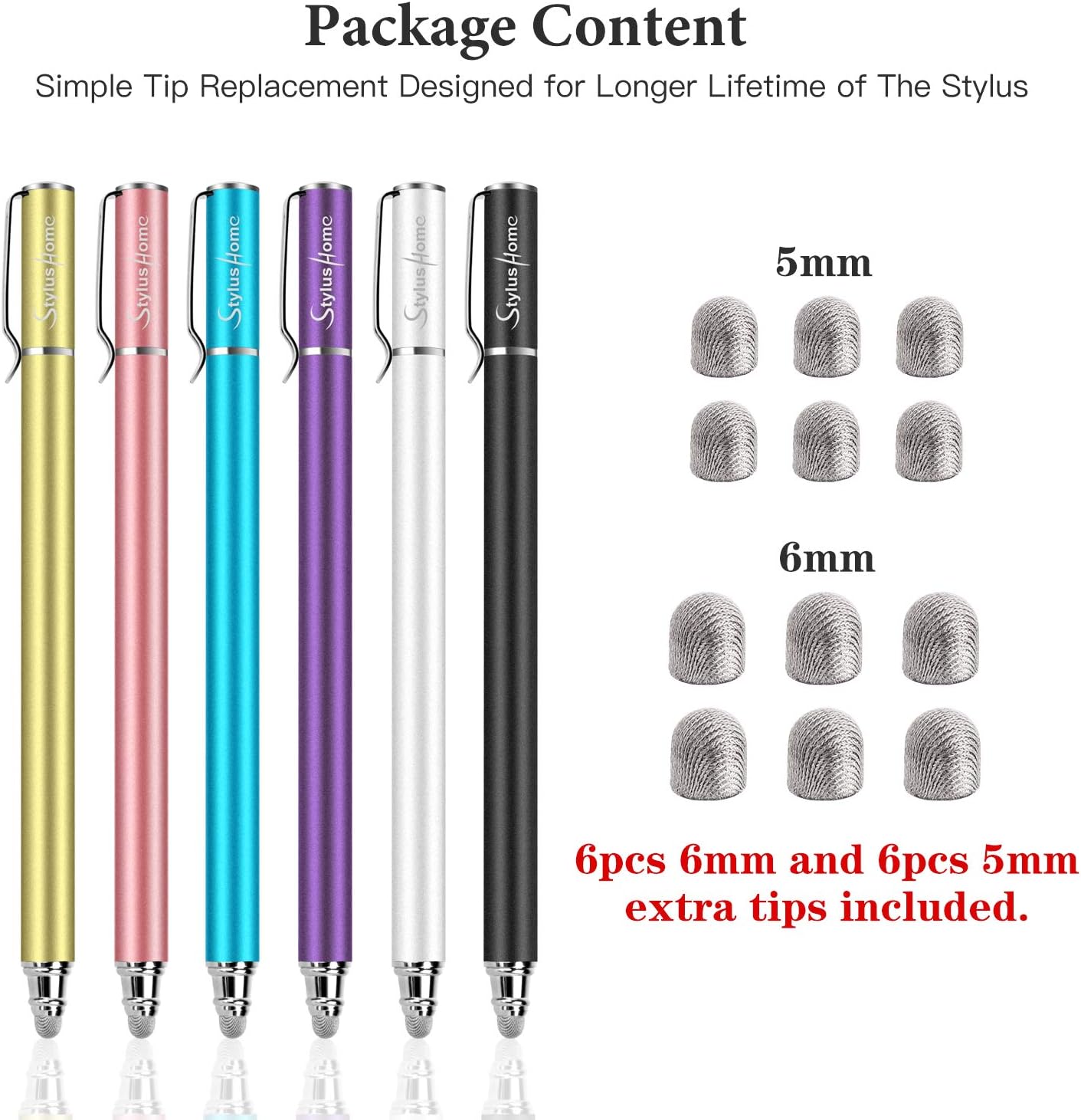 StylusHome Stylus Pens for Touch Screens(6 Pcs),Sensitivity 2 in 1 Fiber Tips Capacitive Stylus with 12 Extra Replaceable Tips for iPad iPhone Tablets Samsung Galaxy All Universal Touch Screen Devices
