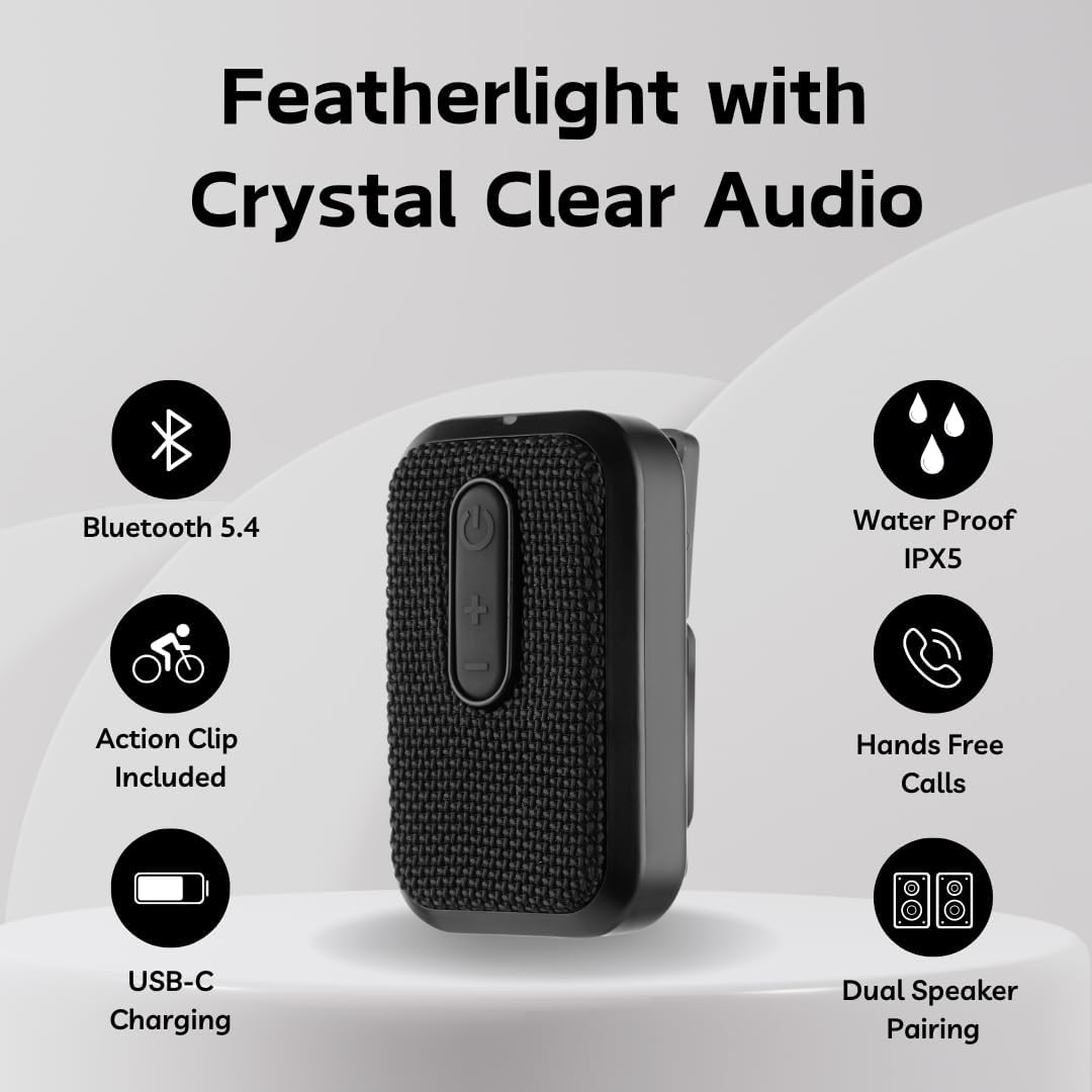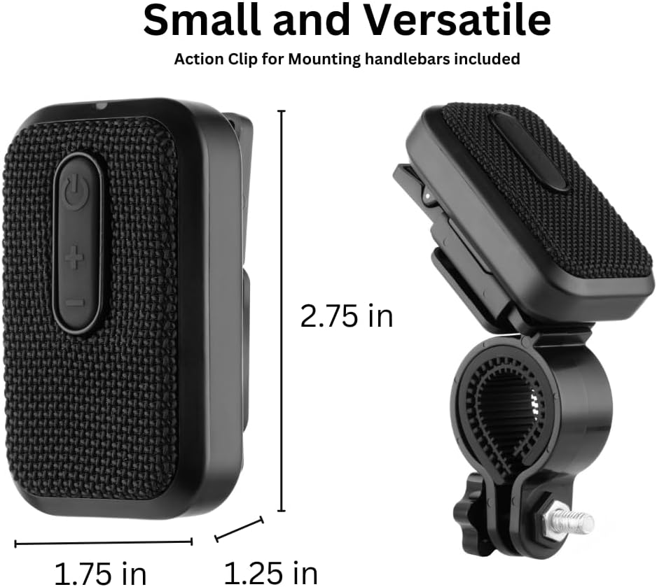 Experience freedom with our Clip-On Speaker, designed to effortlessly attach to any clothing via a clamp. Includes an action clip for mounting on bikes, and handlebars, delivering portable sound wherever you roam. Its the perfect Bike Speaker
