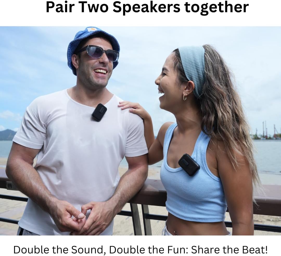 Introducing the Featherweight 45 gram Mini Wearable Speaker: This compact marvel delivers powerful sound wherever you go, embodying ultimate portability and clarity in every beat.