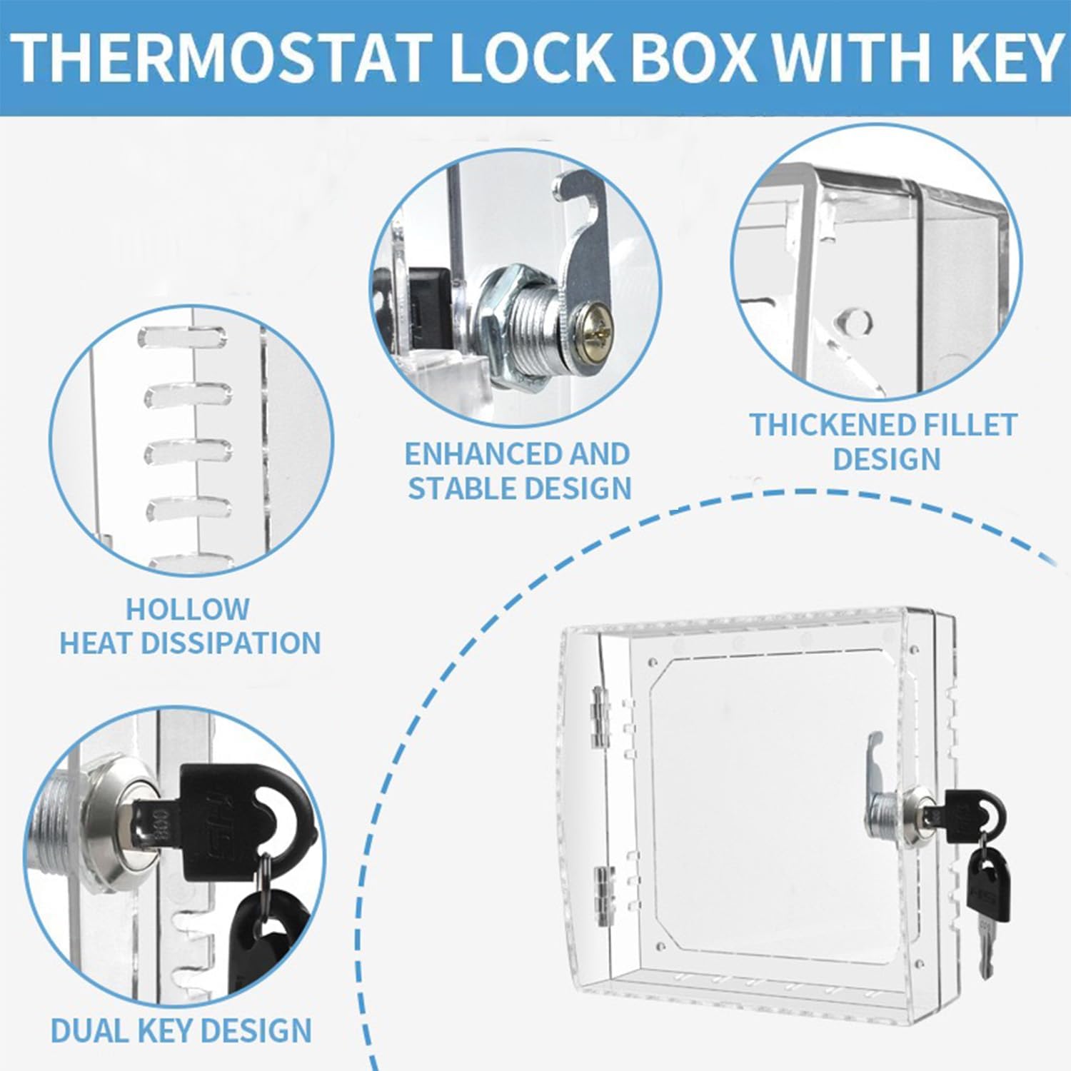 【Military-Grade Clarity & Durability】Made from unbreakable polycarbonate, our Thermostat Lock Box Cover resists yellowing and scratches—unlike cheap plastic covers. The crystal-clear design ensures your thermostat’s display stays visible, while the heavy-duty ac lock box cover with key withstands daily wear. Perfect for high-traffic areas, it blends seamlessly with modern decor.