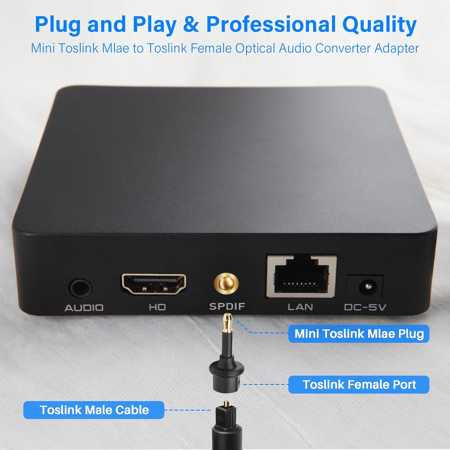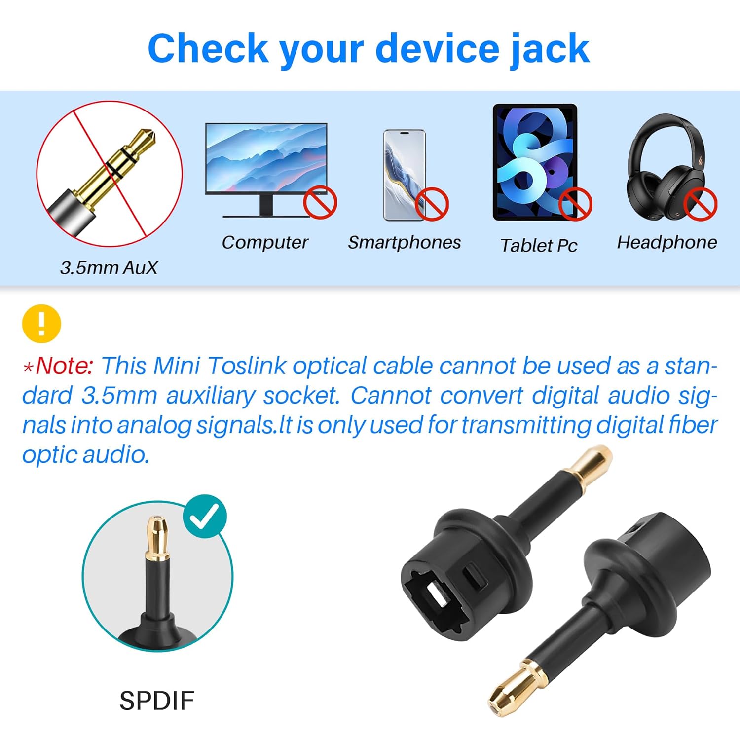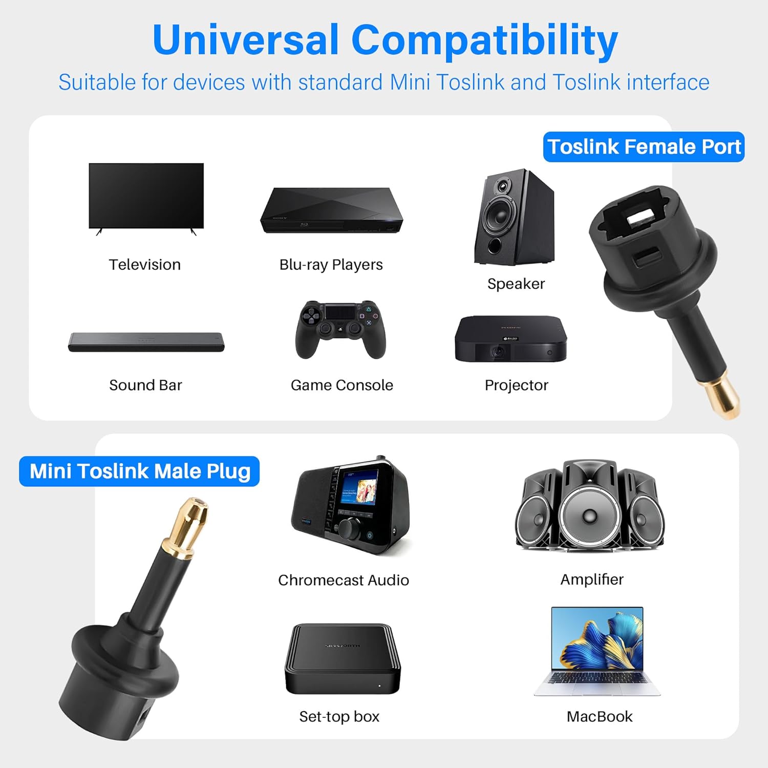 Toslink to Mini Toslink (3.5mm Jack) Audio Adapter 2 Pack, Toslink Female to 3.5mm Jack (Mini Toslink) Male S/PDIF Optical Fiber Digital Connector Converter Compatible for Sound Bar, Home Theater