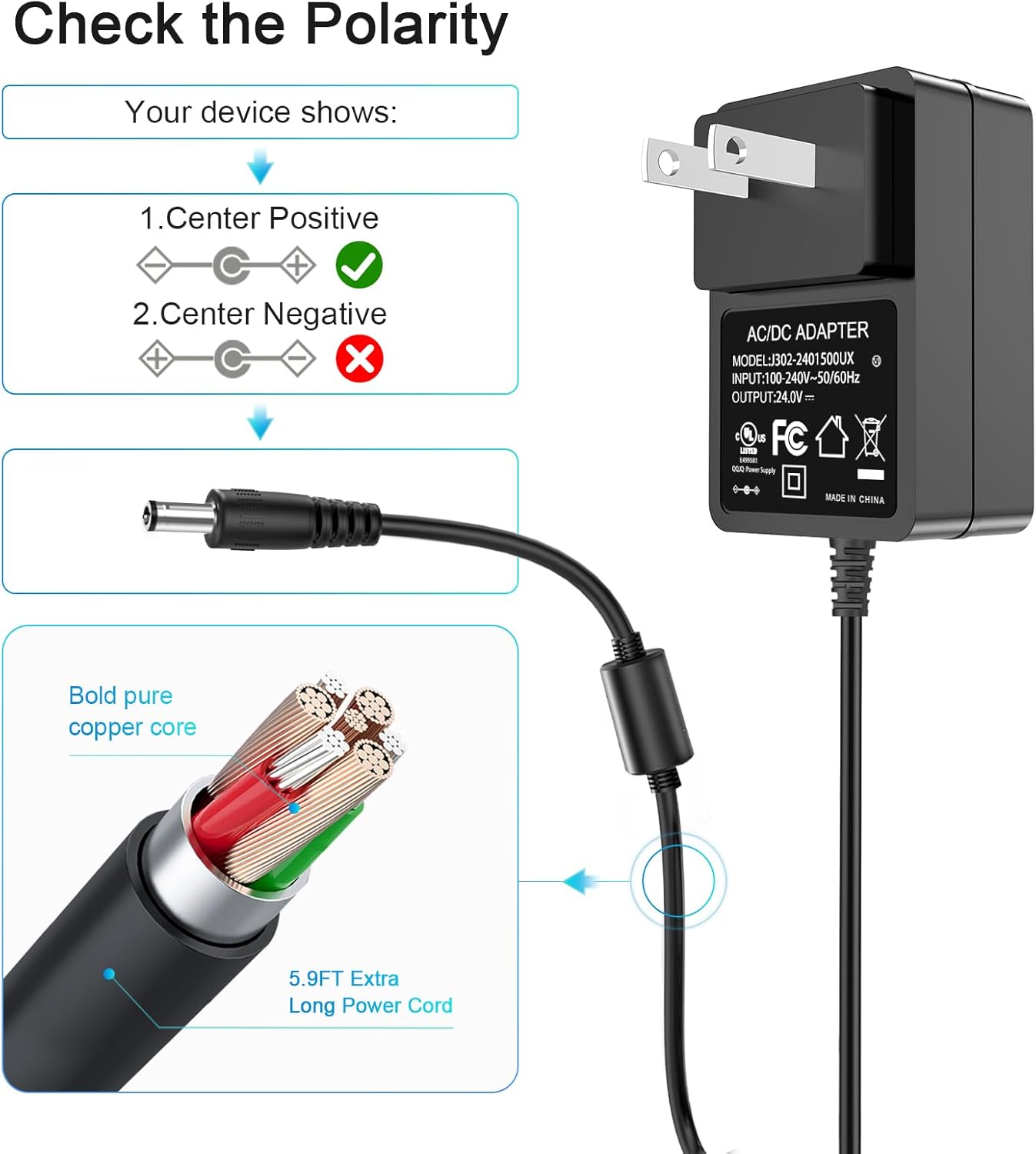 [ 24Vdc Power Supply Compatible with: ] 24 Volt power supply Compatible with 24V 5050 2835 LED strip light LED Nail Lamp Nail Dryer Bluetooth speaker; Sound bar, CCTV Security Cameras, WiFi Camera, 3D Printer,LCD Monitor and more