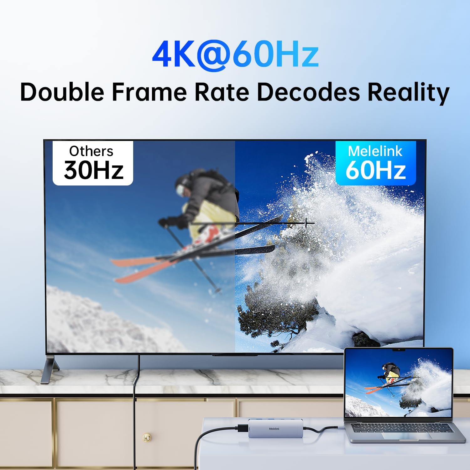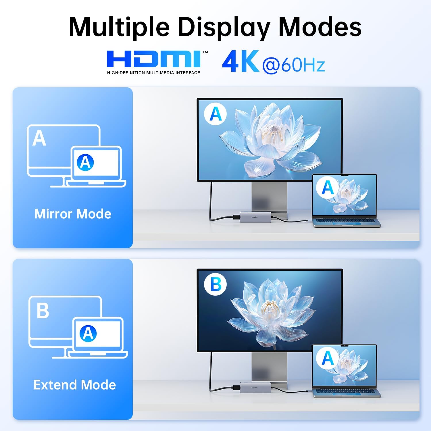 4K@60Hz USB-C to HDMI Hub: This Macbook pro air accessories delivers stunning 4K@60Hz (3840×2160) resolution, with downscaling support for 2K@120Hz and 1080P. This macbook adapter multiport allows to mirror or extend your laptop screens or monitors by connecting monitors tvs projectors with hdmi ports. Note: Your USB-C port must support video output (DisplayPort Alt Mode or Thunderbolt) for the adapter to function—otherwise, no signal will be transmitted.