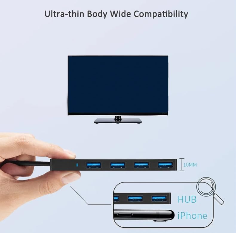 ⏩ User-Friendly Design – The ultra-slim, 1cm body allows for easy handling and a sleek appearance. Designed to accommodate most flash drives and peripherals, so you can insert multiple devices simultaneously without space issues.