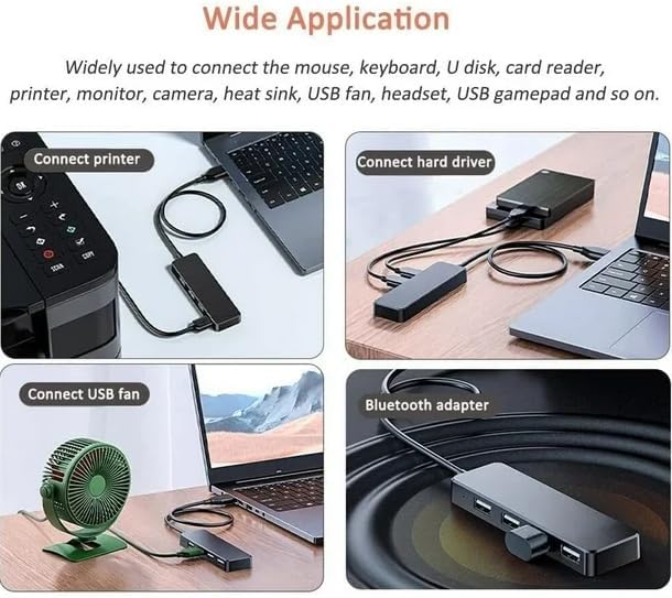 【4-ports at Same Time】:This USB hub can easily expand one of your computer’s USB ports into four port(Does not support charging). Support 4 ports to work at the same time, without any pressure, and keep the temperature in the middle range. Plug and play, no need driver, easy to use. 【Wide Appliaction】: 4-port USB expander applies to various devices: laptop, pc tower, XBOX, PS4, flash drive, keyboard, mouse, card reader, HDD, cellphone OTG adapter, printer, camera, USB fan and USB cables.