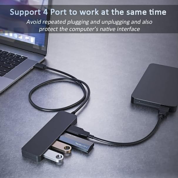 ⏩ 4-Port USB 3.0 Hub – Expand one USB port into four high-speed ports with this USB 3.0 hub. Supports simultaneous use of all four ports (does not support charging) for laptops, PCs, Xbox, and more. Plug and play with no drivers needed.